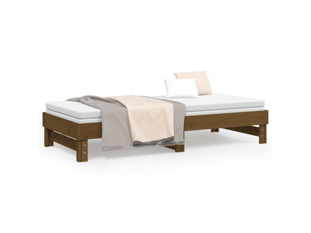 - Rozkladacia pohovka: Táto drevená denná posteľ sa dá použiť ako pohovka cez deň alebo ako posteľ v noci, čím poskytuje rýchle riešenie na prenocovanie hostí a zároveň šetrí miesto.