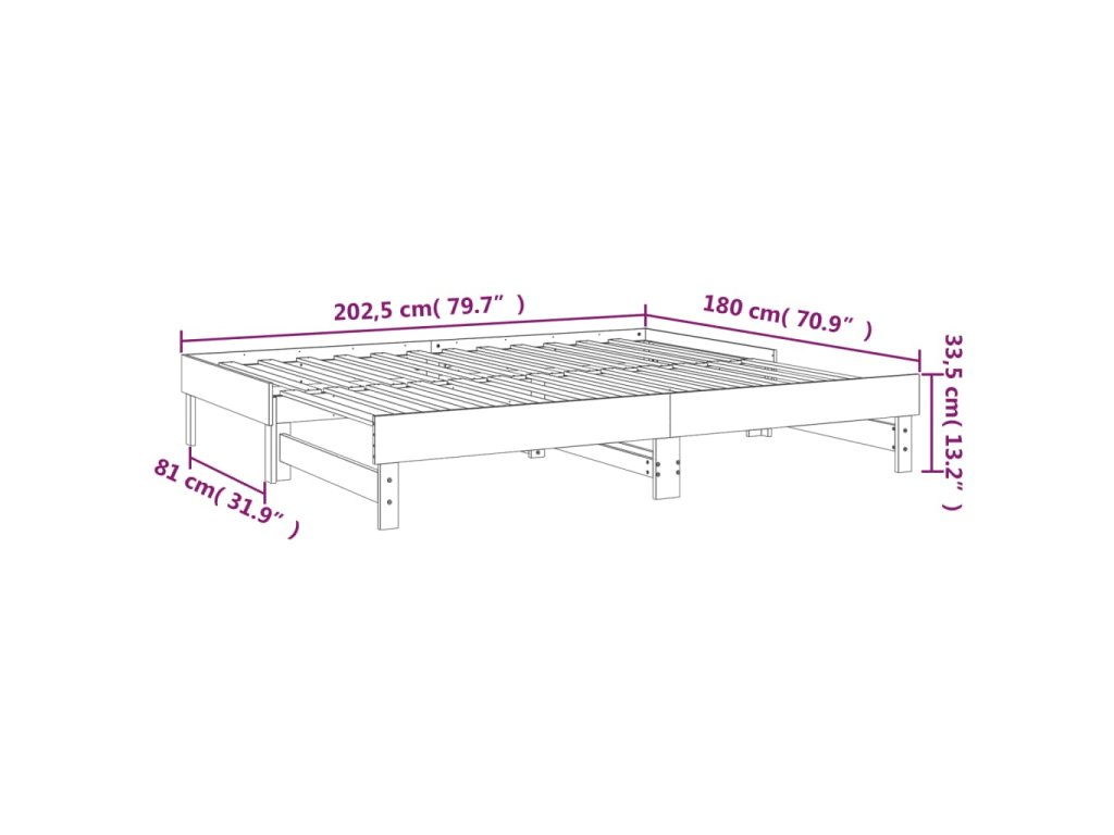 - Rozmery dennej postele (neroztiahnutá): 202,5 x 95 x 33,5 cm (D x Š x V)