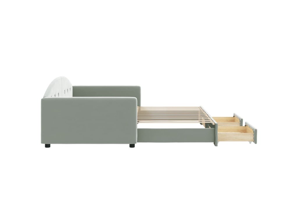 Táto denná posteľ 2 v 1 s rozkladacou posteľou a zásuvkami, ktorá slúži ako pohovka aj posteľ, bude praktickým a pútavým doplnkom vašej obývačky alebo spálne.