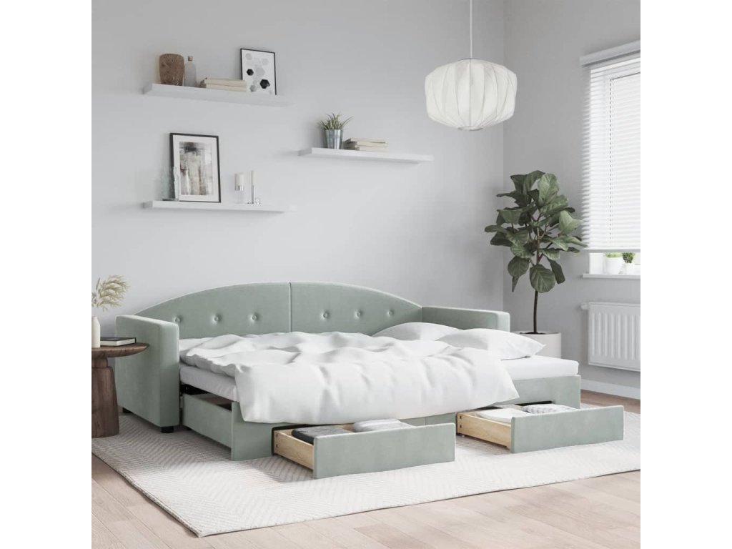 Táto denná posteľ 2 v 1 s rozkladacou posteľou a zásuvkami, ktorá slúži ako pohovka aj posteľ, bude praktickým a pútavým doplnkom vašej obývačky alebo spálne.