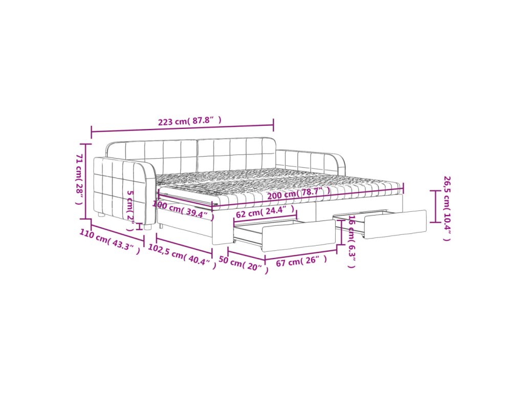 Táto denná posteľ 2 v 1 s rozkladacou posteľou, ktorá slúži ako pohovka aj posteľ, bude praktickým a pútavým doplnkom vašej obývačky alebo spálne.