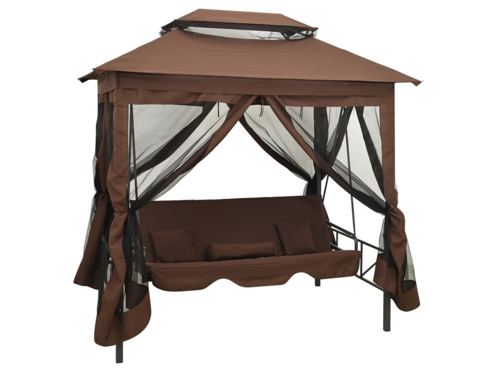 Vďaka pripevneným závesom so zapínaním na suchý zips môžete hojdaciu posteľ bez problémov uzavrieť zo všetkých štyroch strán. Sieťkovaný záves poskytuje ideálnu ochranu pred hmyzom a zároveň vytvorí dostatočné súkromie. Sedadlo sa dá ľahko premeniť na posteľ. Súčasťou balenia sú aj dva obdĺžnikové vankúše a dva vankúše v tvare valca, ktoré sa postarajú o to, aby vám na hojdačke bolo čo najpohodlnejšie.