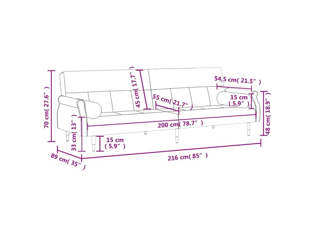 - Rozmery vankúša (každý): 15 x 54,5 cm (priemer x V)