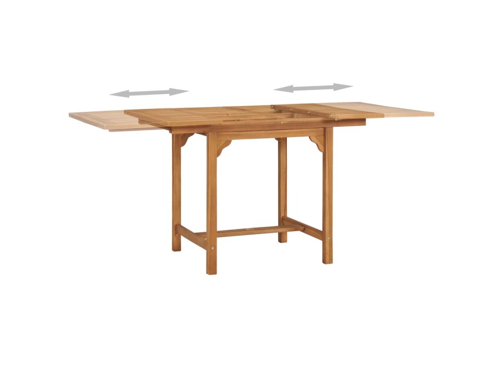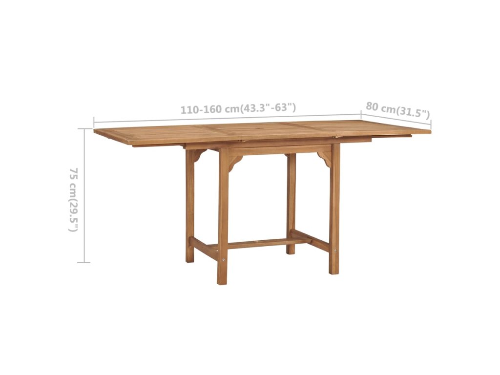 Vďaka svojmu špeciálnemu dizajnu sa tento obdĺžnikový jedálenský stôl dá v prípade potreby roztiahnuť do dĺžky maximálne 160 cm. Tíkový nábytok je vyhotovený z mimoriadne trvácneho tvrdého tíkového dreva, ktoré bolo umelo vysušené v sušiarni a jeho povrch bol následne jemne obrúsený, aby získal hladký vzhľad. Tíkové drevo sa vyznačuje výnimočnou pevnosťou a odolnosťou voči poveternostným vplyvom, a tak predstavuje jeden z najvhodnejších materiálov na výrobu záhradného nábytku spomedzi všetkých ostatných druhov dreva. Ak si chcete zaobstarať záhradný nábytok, ktorý vám bude slúžiť dlhé roky, tíkové drevo je pre vás ako stvorené.