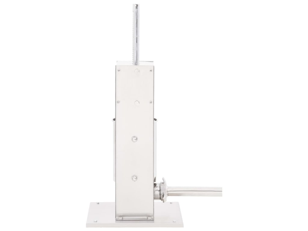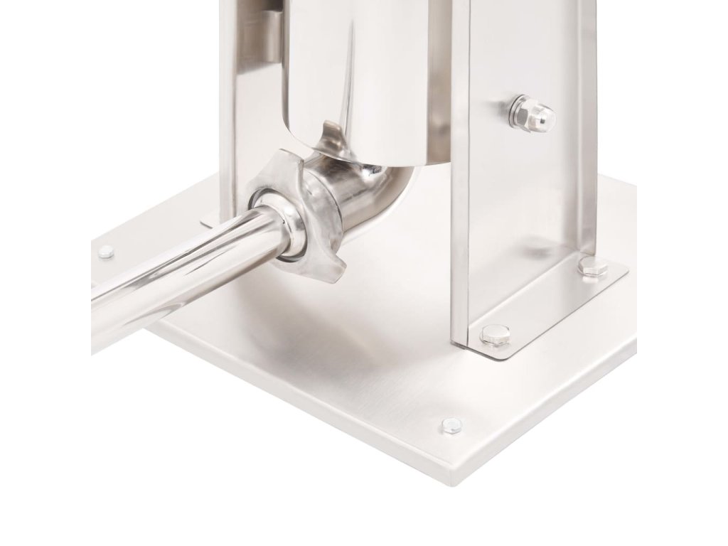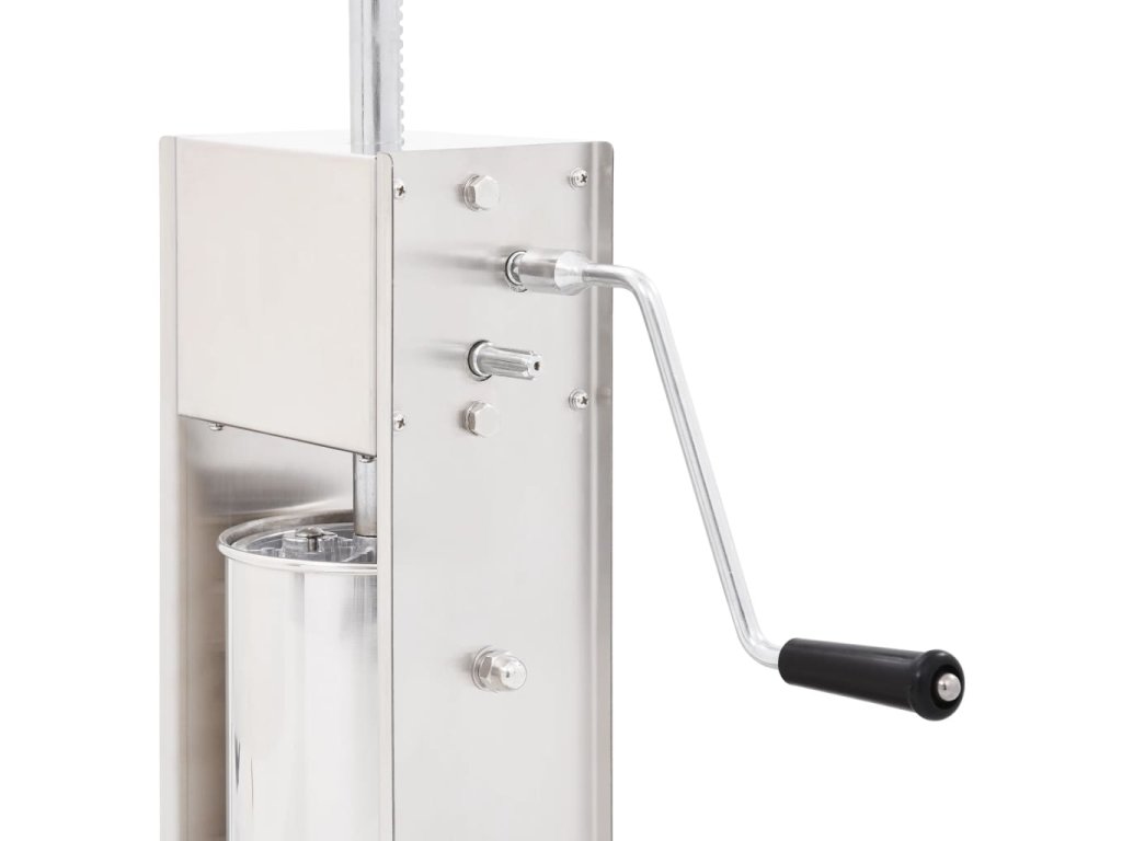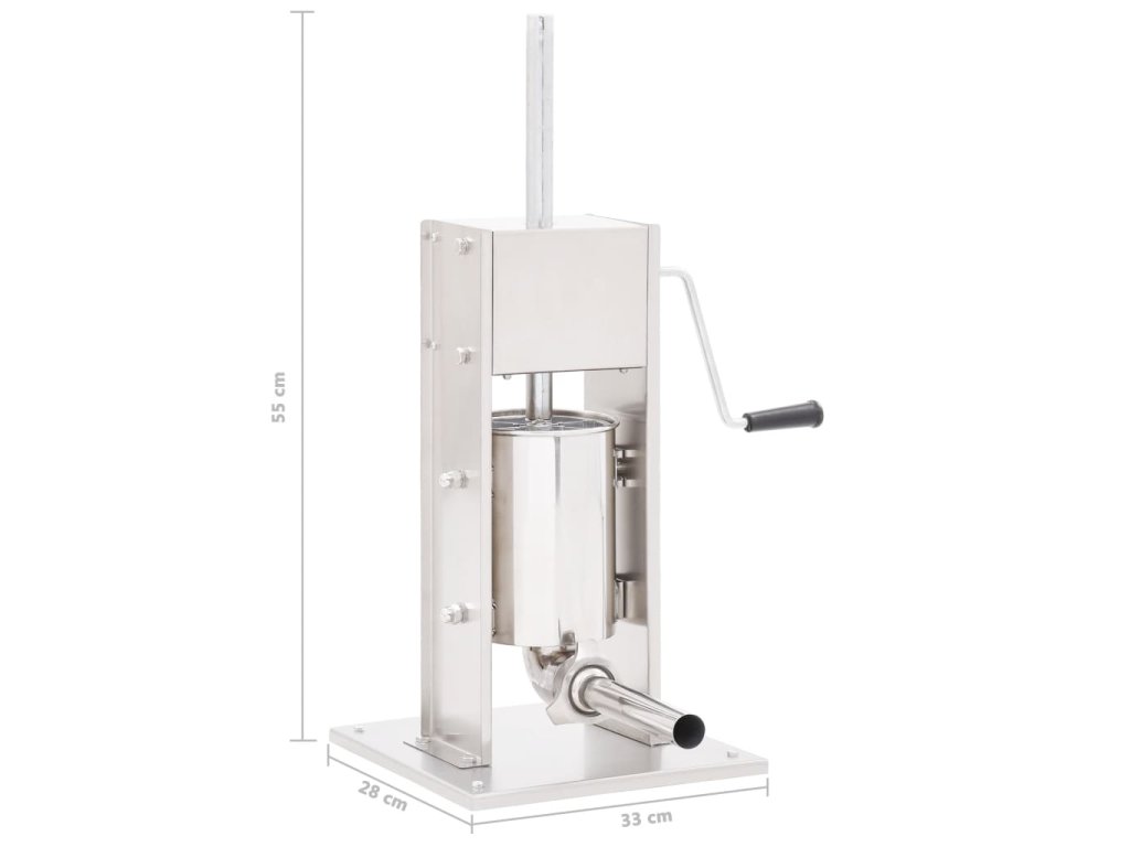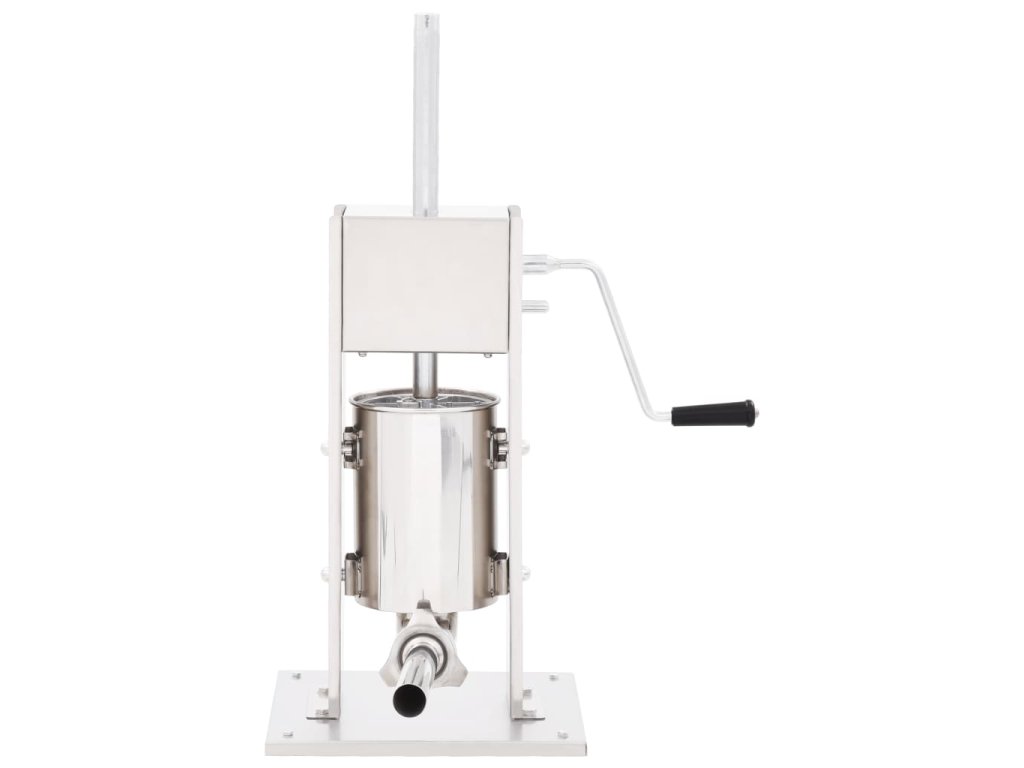 Plnička na klobásy z nehrdzavejúcej ocele je vybavená 3-litrovou násypkou, ktorá sa dá nakloniť a odnímateľná pre pohodlné plnenie klobásového mäsa a pre ľahké čistenie. Ručnou kľukou sa uvedie do činnosti piest, ktorý tlačí klobásovú zmes cez plniacu trubicu. Okrem toho sú v balení 3 plniace trubice rôznych veľkostí, aby vyhovovali vašim potrebám.