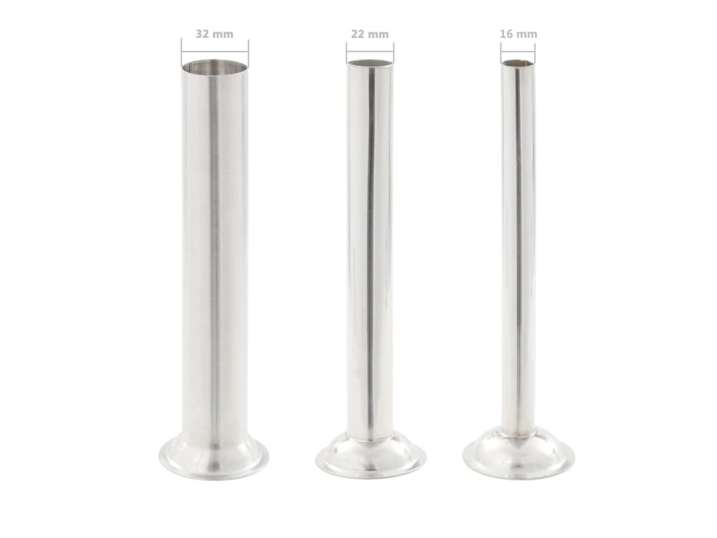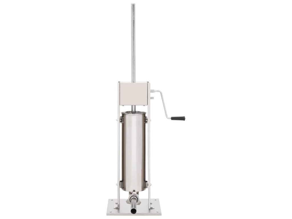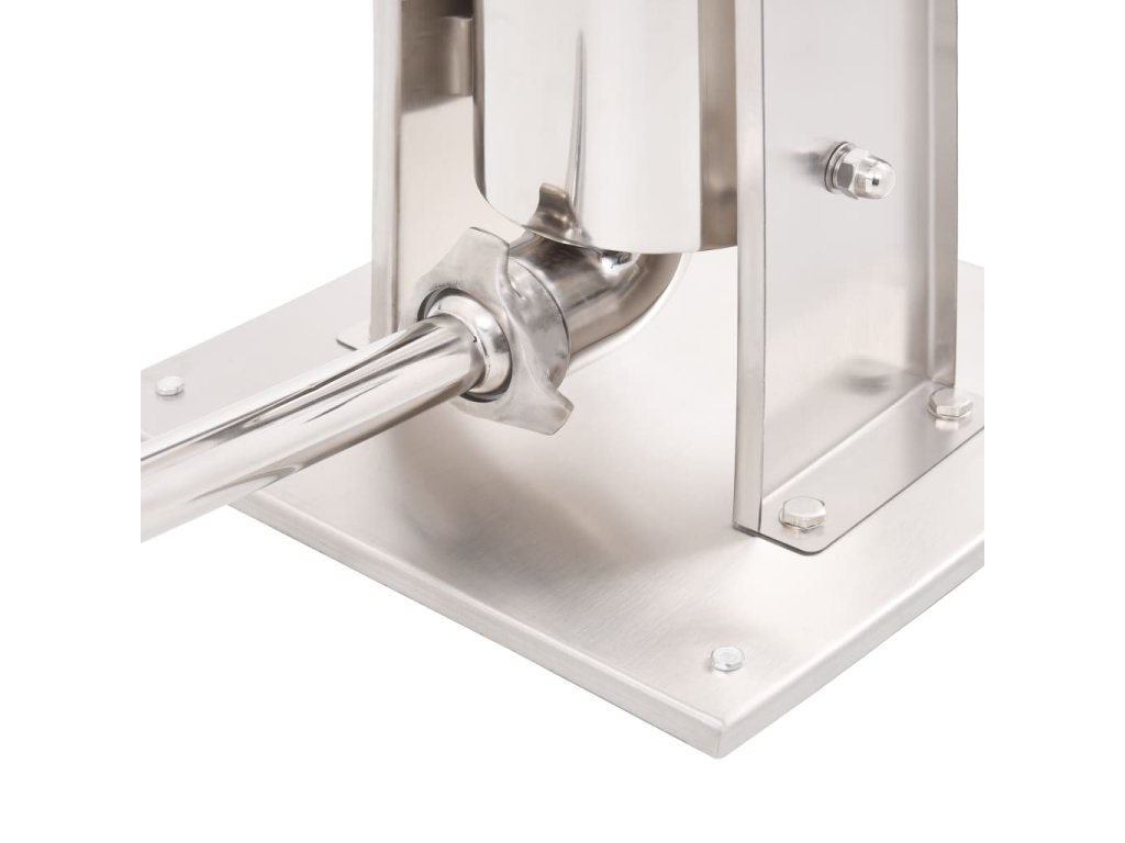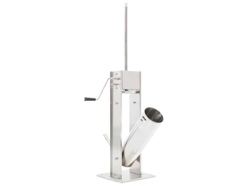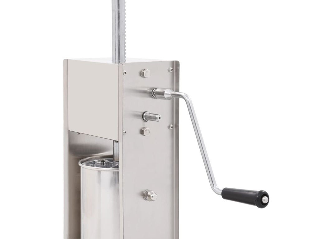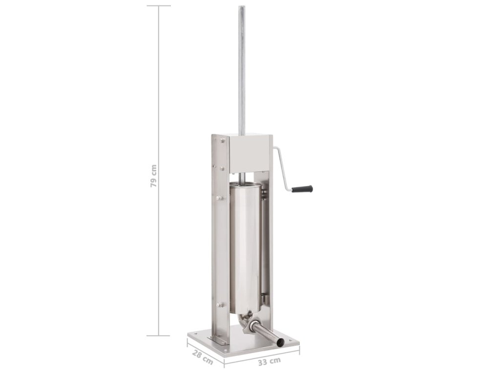 Plnička na klobásy z nehrdzavejúcej ocele je vybavená 7-litrovou násypkou, ktorá sa dá nakloniť a odnímateľná pre pohodlné plnenie klobásového mäsa a pre ľahké čistenie. Ručnou kľukou sa uvedie do činnosti piest, ktorý tlačí klobásovú zmes cez plniacu trubicu. Okrem toho sú v balení 3 plniace trubice rôznych veľkostí, aby vyhovovali vašim potrebám.