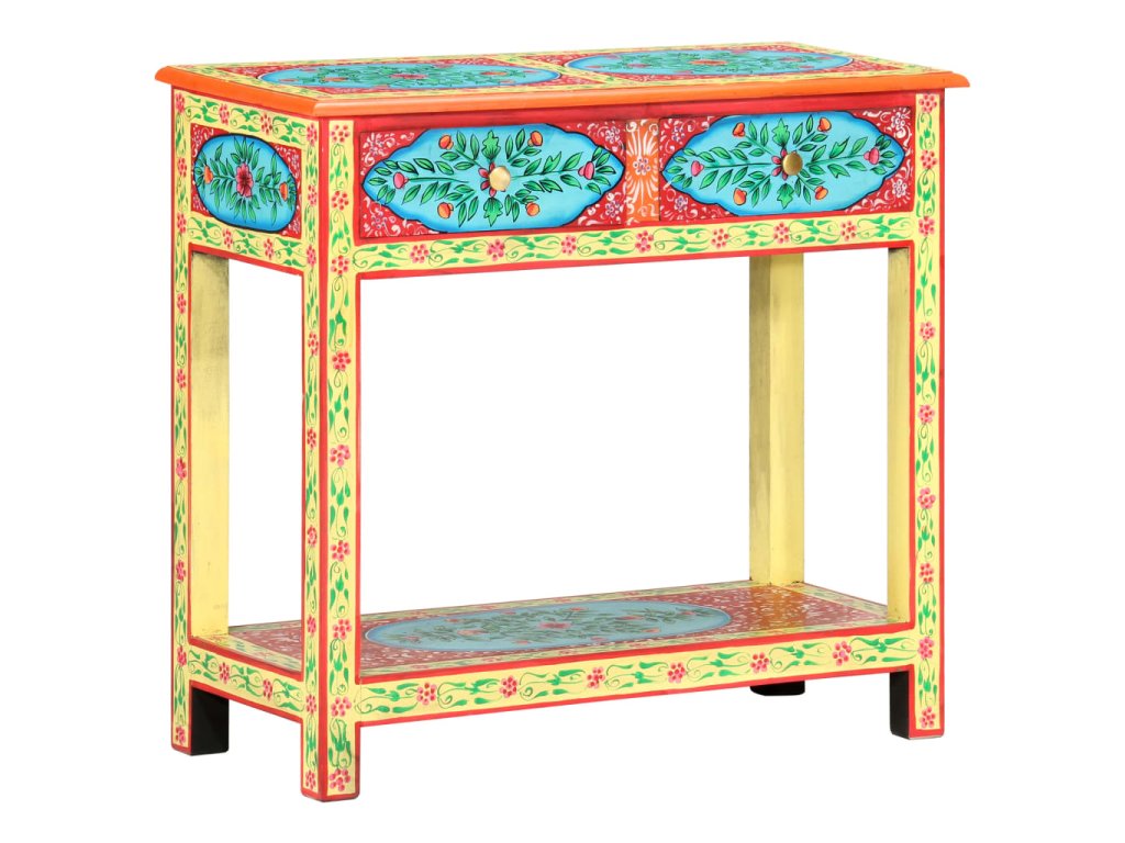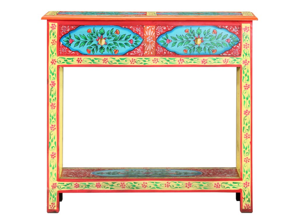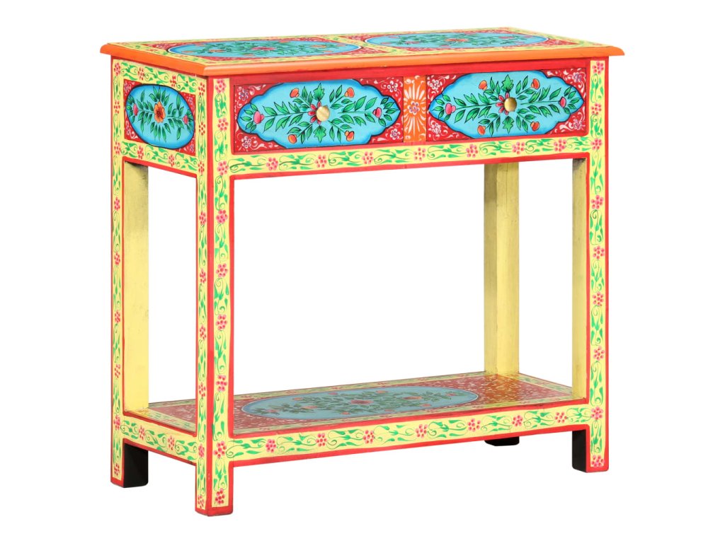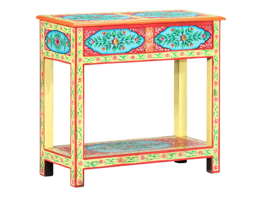 Tento unikátny, krásny konzolový stolík dodá vašej obývacej izbe alebo spálni farebný nádych. Vďaka nápadnému dizajnu bude tento ručne maľovaný konzolový stolík skutočným stredobodom pozornosti vašich hostí.
