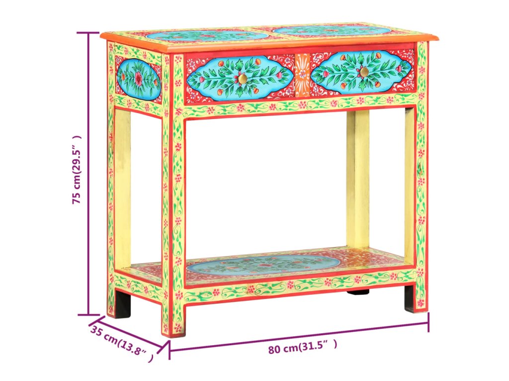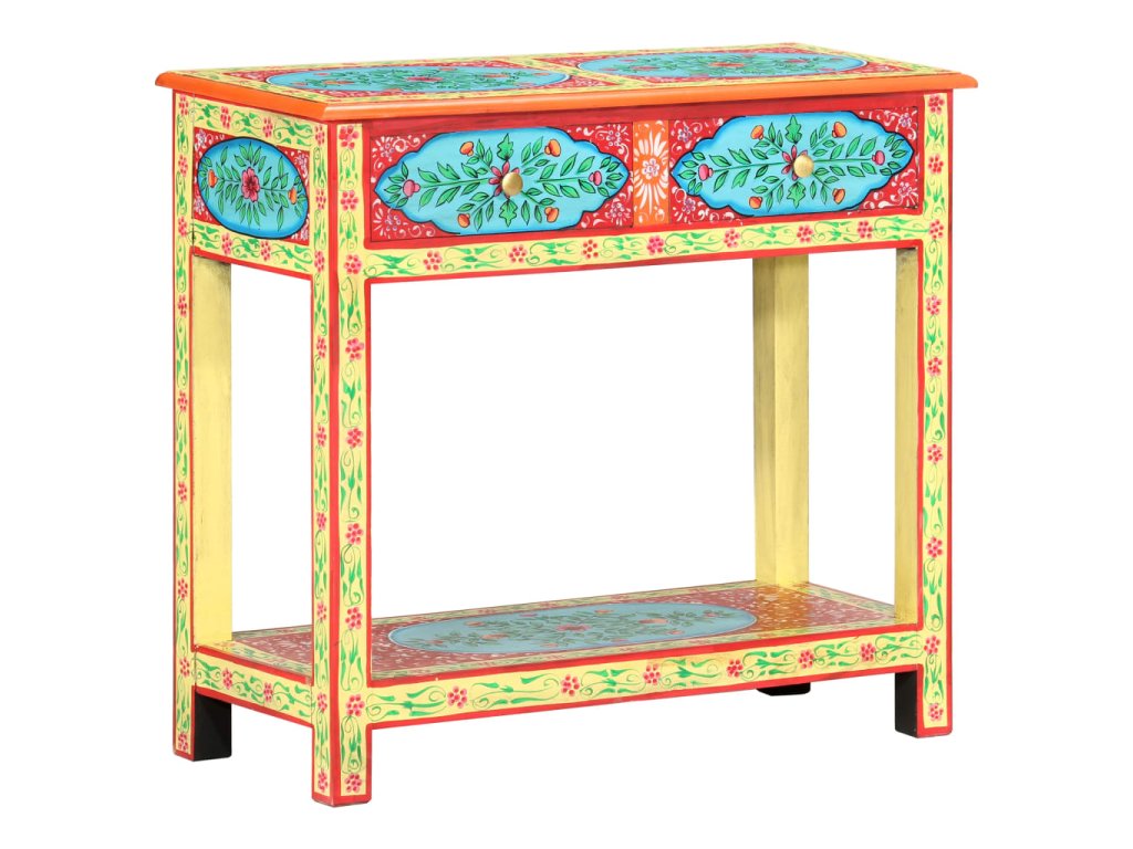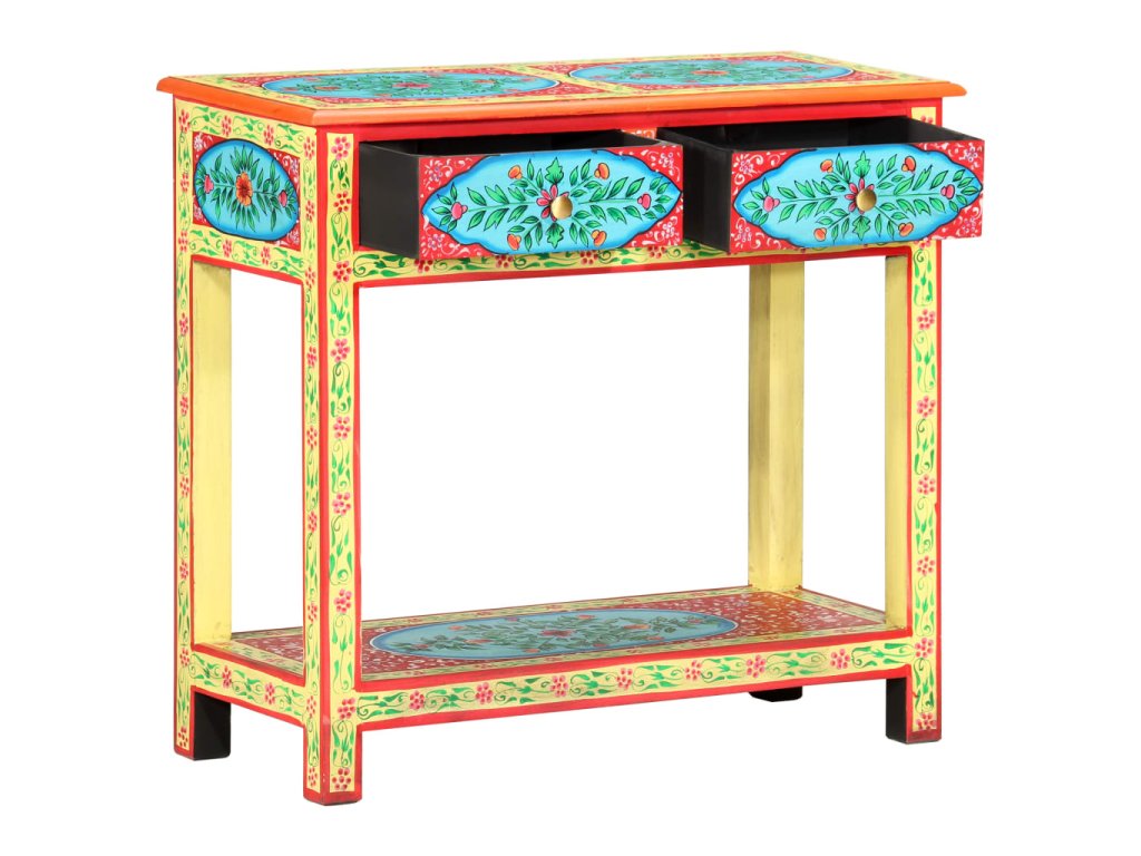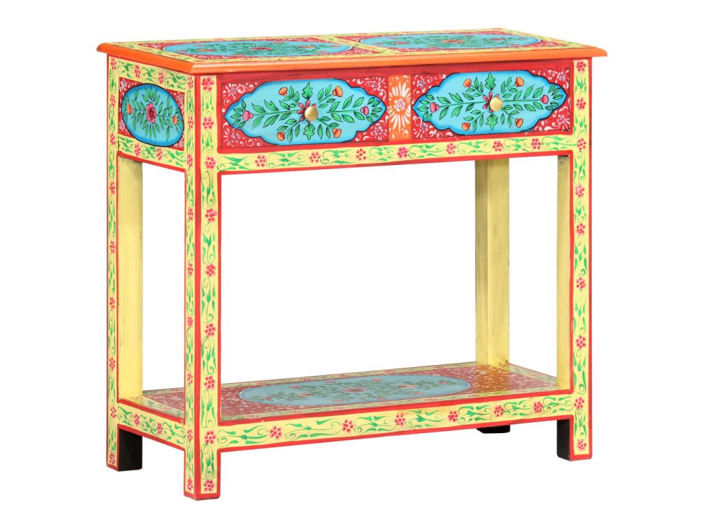 Tento unikátny, krásny konzolový stolík dodá vašej obývacej izbe alebo spálni farebný nádych. Vďaka nápadnému dizajnu bude tento ručne maľovaný konzolový stolík skutočným stredobodom pozornosti vašich hostí.