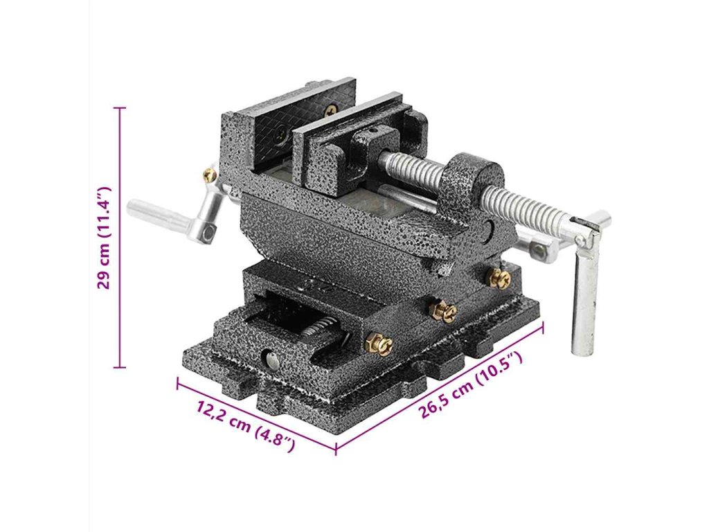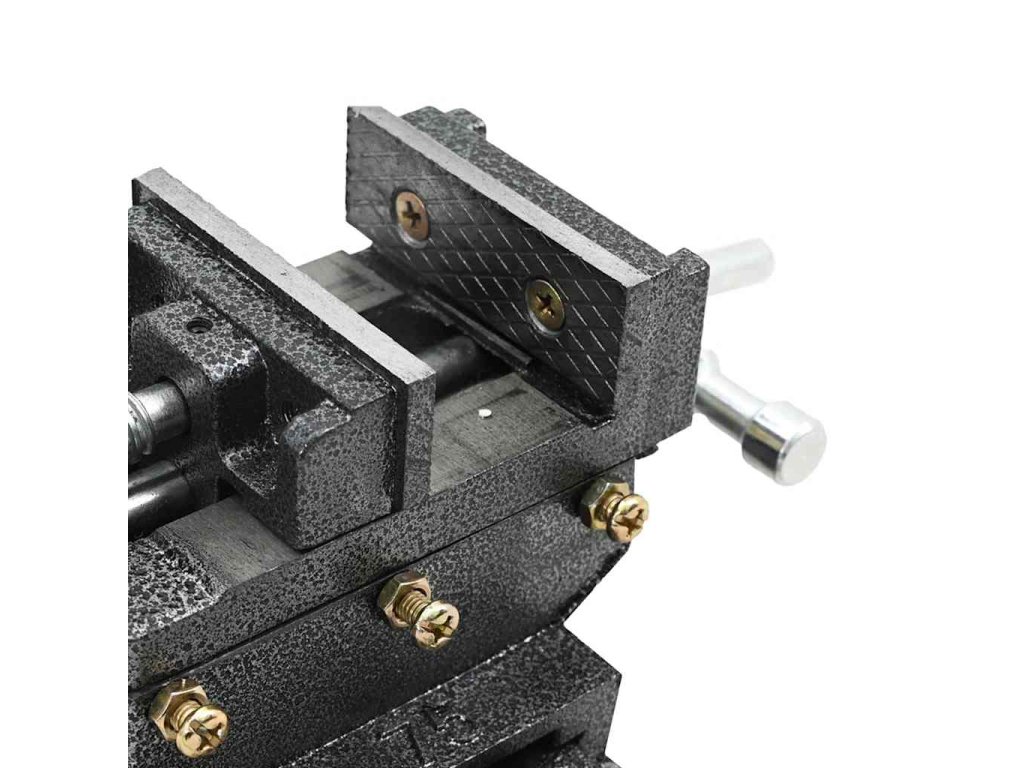 Zverák je vyrobený z liatiny, a preto je skutočne pevný a robustný. Krížový posuvný zverák sa vám zíde napríklad vtedy, keď potrebujete do jedného obrobku vyvŕtať viacero otvorov, pretože obe osi sa dajú zafixovať pomocou vodiacich skrutiek.