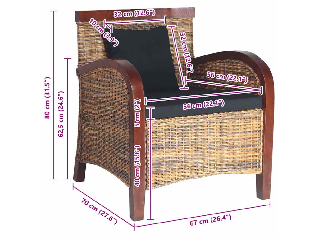 Sedadlo z pravého prírodného ratanu sa dodáva spolu s podložkou a vankúšom, aby sa vám na ňom sedelo naozaj pohodlne. Ak hľadáte nábytok, ktorý dotvorí zariadenie vašej obývačky či spálne, toto krásne ručne pletené kreslo vás určite nesklame.
