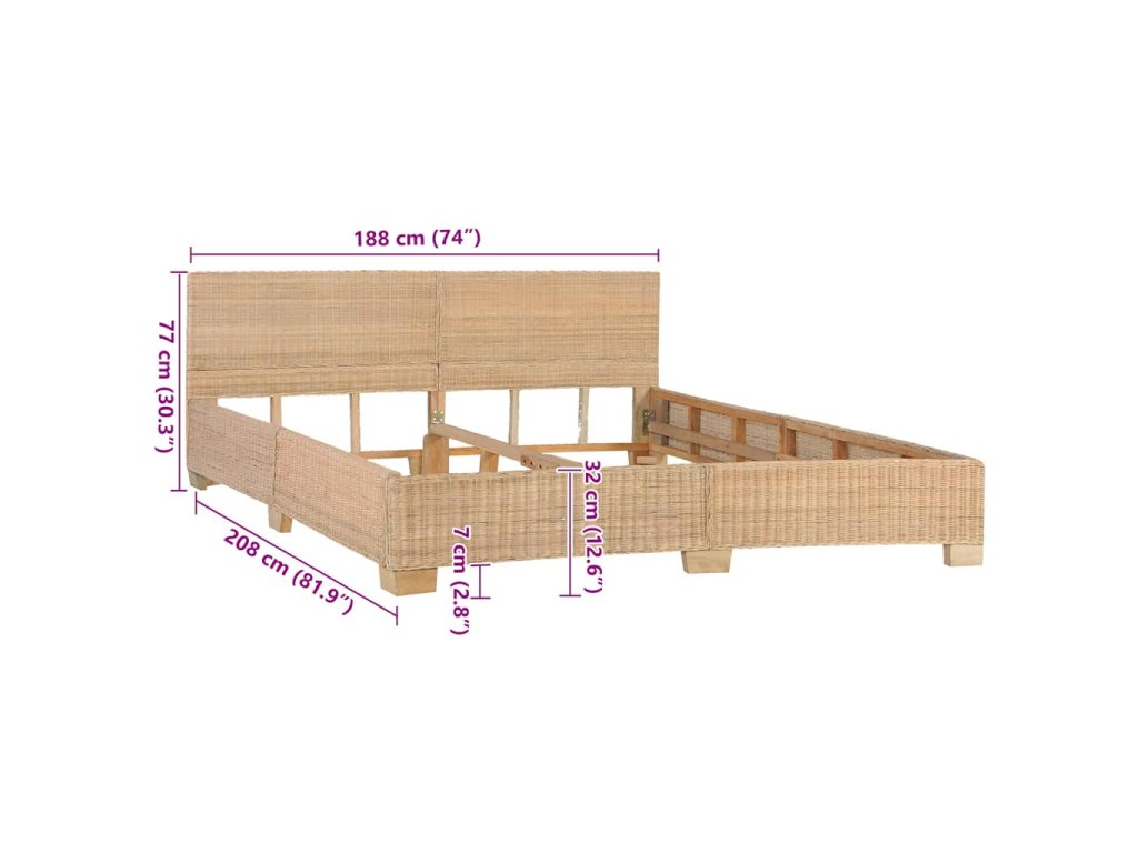 Poznámka: V balení sa nachádza len posteľný rám. Rošt a matrac nie sú súčasťou balenia. Posteľ je ručne upletená z prírodného ratanu, a preto sa farba jednotlivých výrobkov môže líšiť.