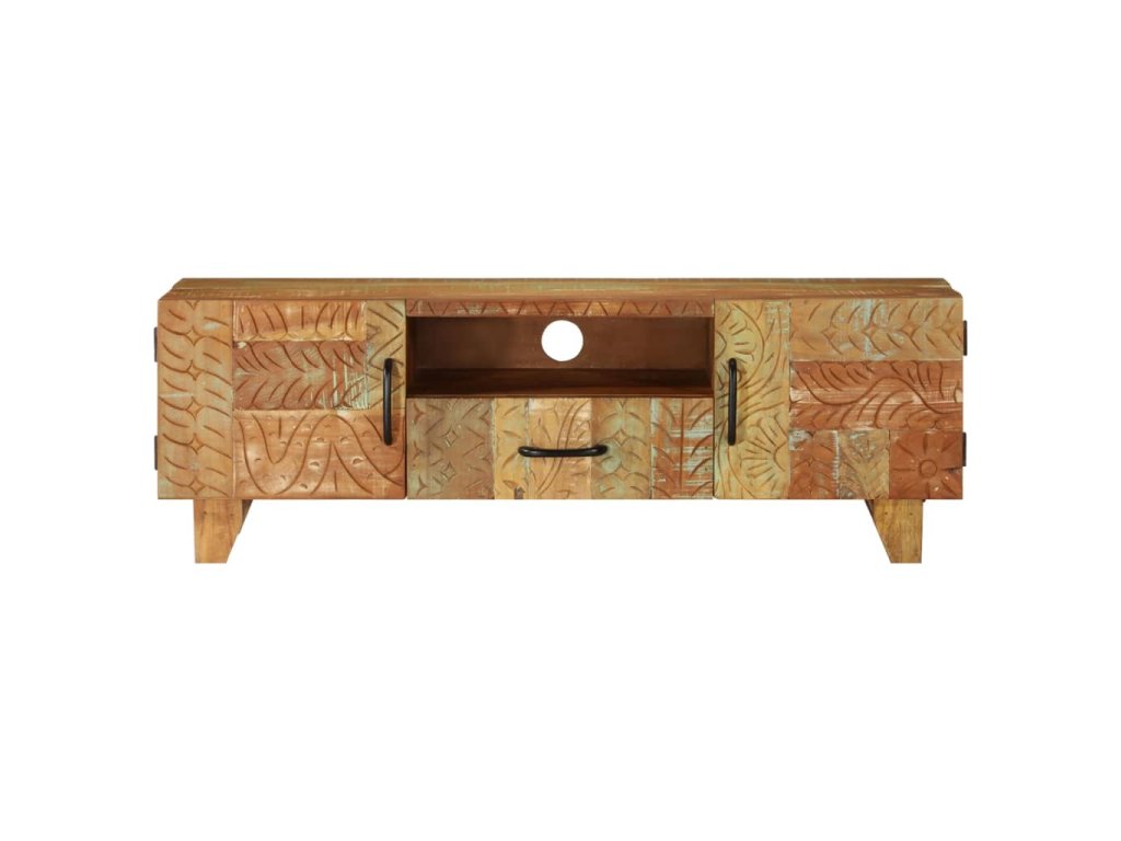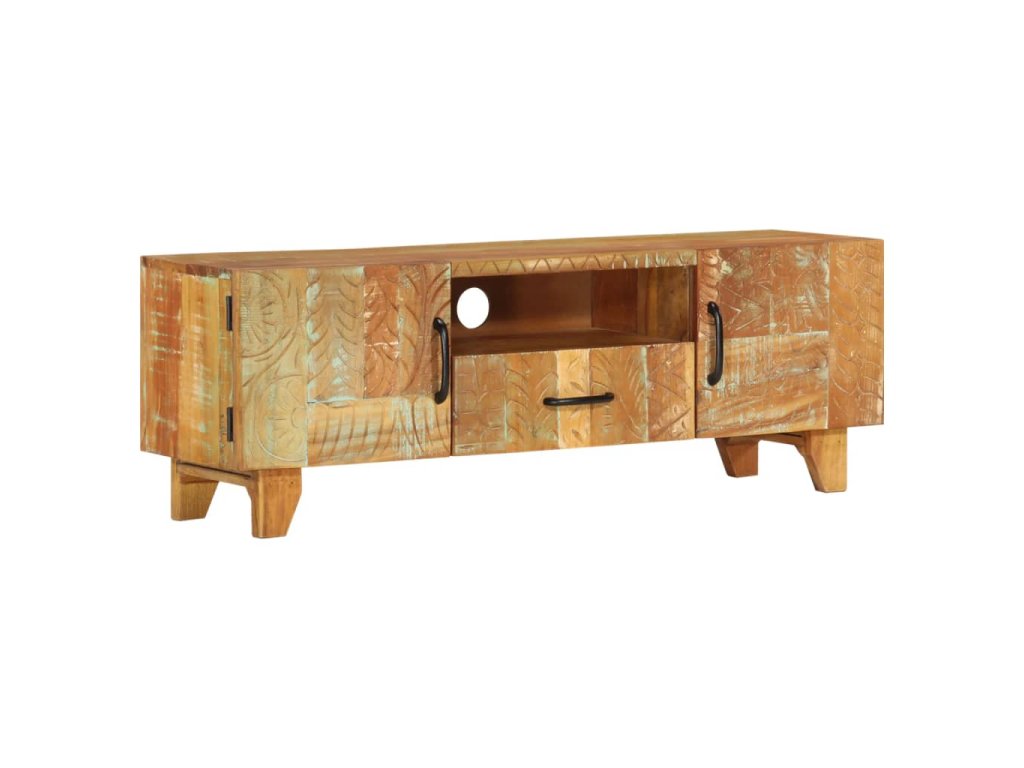 Farebná skrinka na Hi-Fi vežu so starožitným ručne vyrezávaným vzorom je vyrobená z recyklovaného masívu, ktorý pochádza z trámov, podláh a nosníkov zo starých zbúraných stavieb a pozostáva z rôznych typov dreva, ako napríklad borovicového, tíkového, bukového, dubového, cédrového, mangového či akáciového dreva. Recyklované drevo sa preto vyznačuje vlastnosťami týchto typov dreva. Recyklované drevo je staré, zvetrané a usušené, a preto sa nezmršťuje ani neohýba. Každý krok výrobného procesu sa vykonáva s maximálnou starostlivosťou, či už je to leštenie, natieranie alebo lakovanie. Vďaka vynikajúcemu remeselnému opracovaniu a krásnej textúre dreva je každý kus nábytku výnimočný a trochu odlišný od ostatných. Táto skrinka na plazmovú televíziu vo vintage štýle navyše obsahuje 2 dvierka, 1 zásuvku a 1 priečinok, ktoré poskytujú ideálne miesto na odkladanie menších predmetov, aby ste ich mali vždy poruke. Nízka skrinka sa jednoducho montuje.