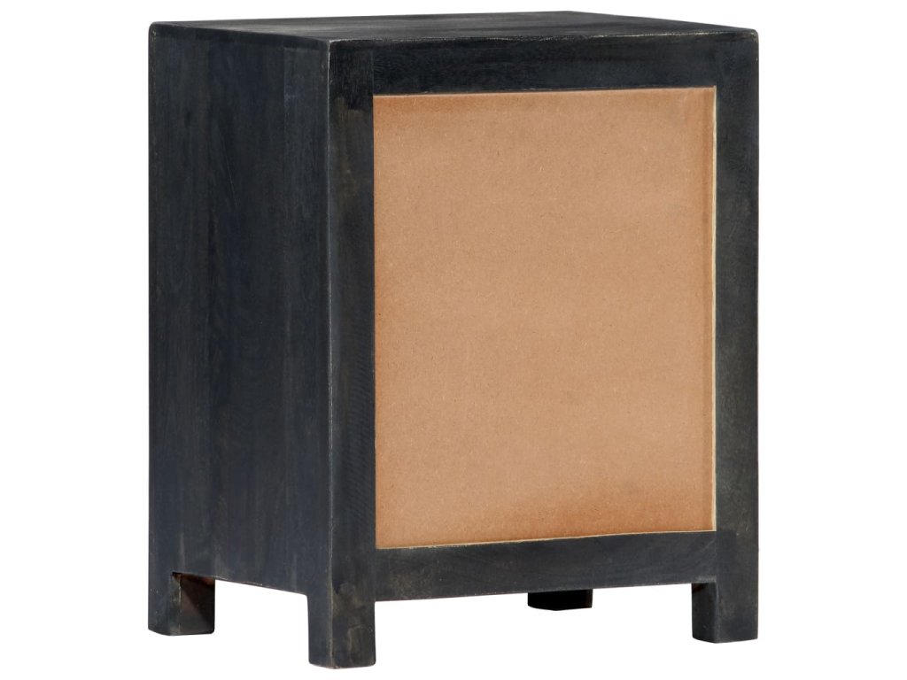 Nočný stolík je vyrobený z masívneho mangovníkového dreva, ktoré má krásny povrch vďaka lešteniu, natieraniu a lakovaniu. Vyžaruje z neho rafinovaný vzhľad. Dve zásuvky so ručne vyrezávaným vzorom skrášľujú nočný stolík a zároveň poskytujú dostatočný úložný priestor pre uloženie menších predmetov, ktoré chcete mať na dosah ruky. Nočný stolík sa dá ľahko zmontovať a vyčistiť vlhkou handričkou.
