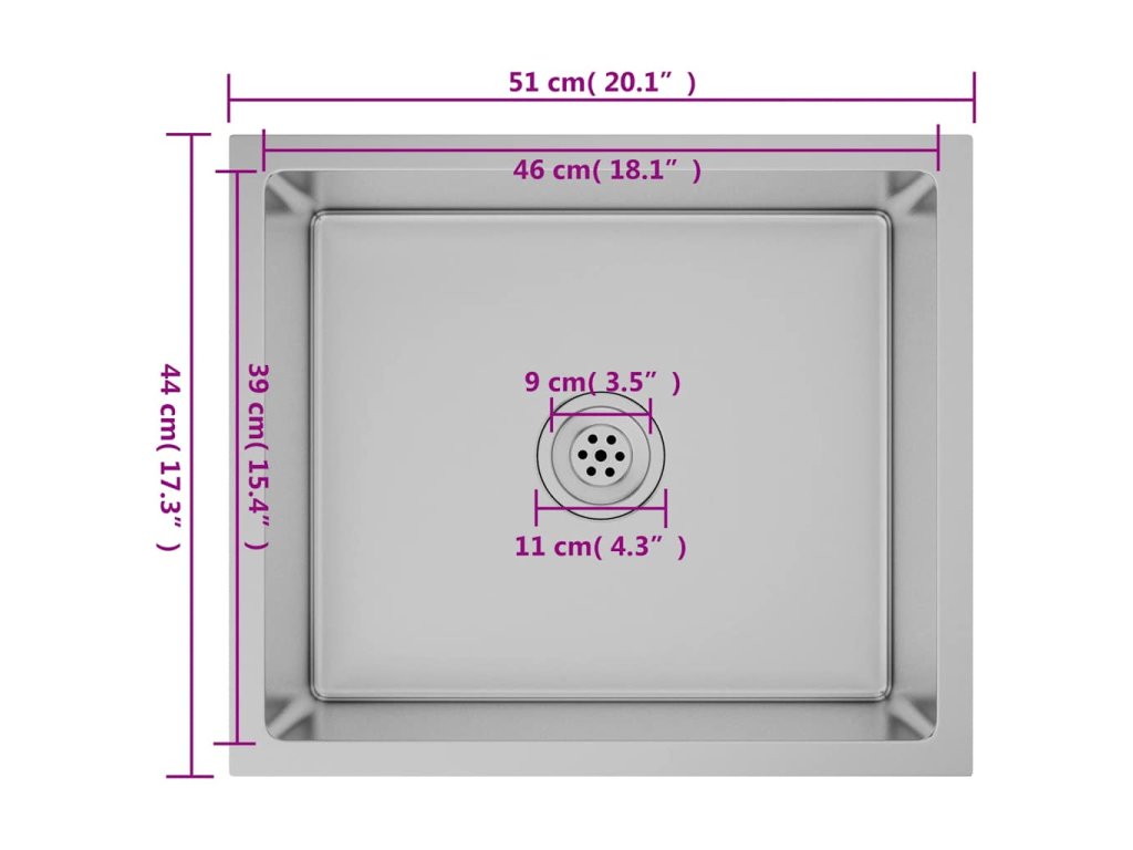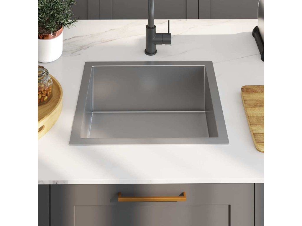 Tento drez kombinuje tie najlepšie funkcie a pôsobivý dizajn a je ručne vyrobený z vysokokvalitnej nehrdzavejúcej ocele s antikondenzačným náterom. Je odolný voči plesniam, neobsahuje žiadne olovo a odoláva korózii. Je vybavený podložkami, ktoré zabezpečujú zvukovú izoláciu. Výlevka má žľb s jedinečným dizajnom v tvare X, ktorý umožňujé rýchly odtok vody a zabraňuje hromadeniu vody v umývadle.