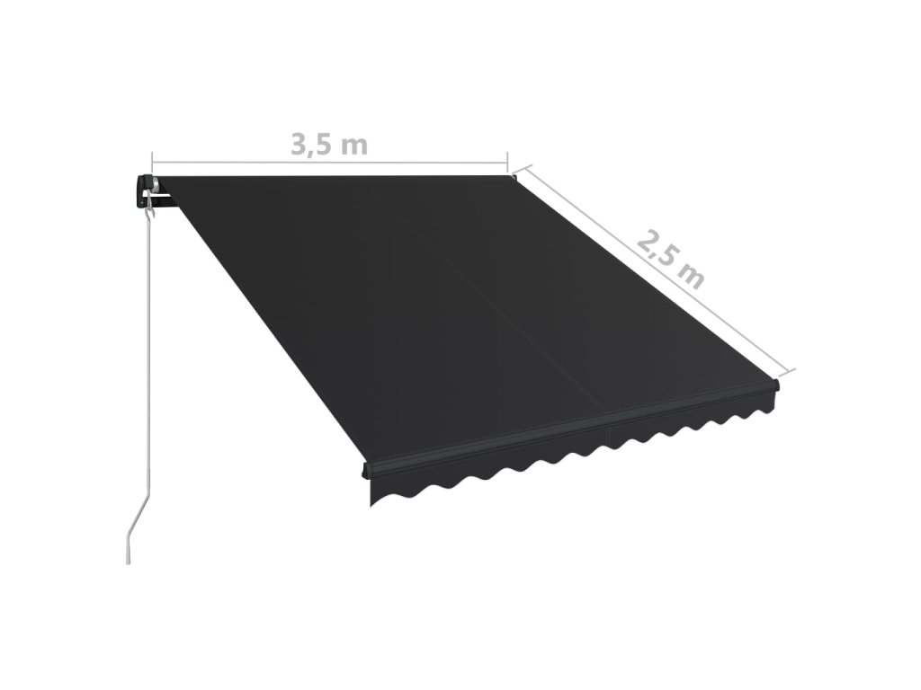 Táto vonkajšia markíza má rám vyrobený z nehrdzavejúceho hliníka s práškovou povrchovou úpravou. Má ľahký dizajn, ale napriek tomu pevnú štruktúru. Taktiež môže odolávať vetru v určitom rozsahu. Ručne zaťahovacia markíza má tkaninu vyrobenú z polyesteru s vysokou hustotou a PU povrch, ktorý je vodeodolný a odolný voči UV žiareniu a vyblednutiu. Uhol a výška sa dá upraviť podľa vašich konkrétnych potrieb. Pomocou dlhej klučky ju môžete jednoducho otvoriť a zatiahnuť.