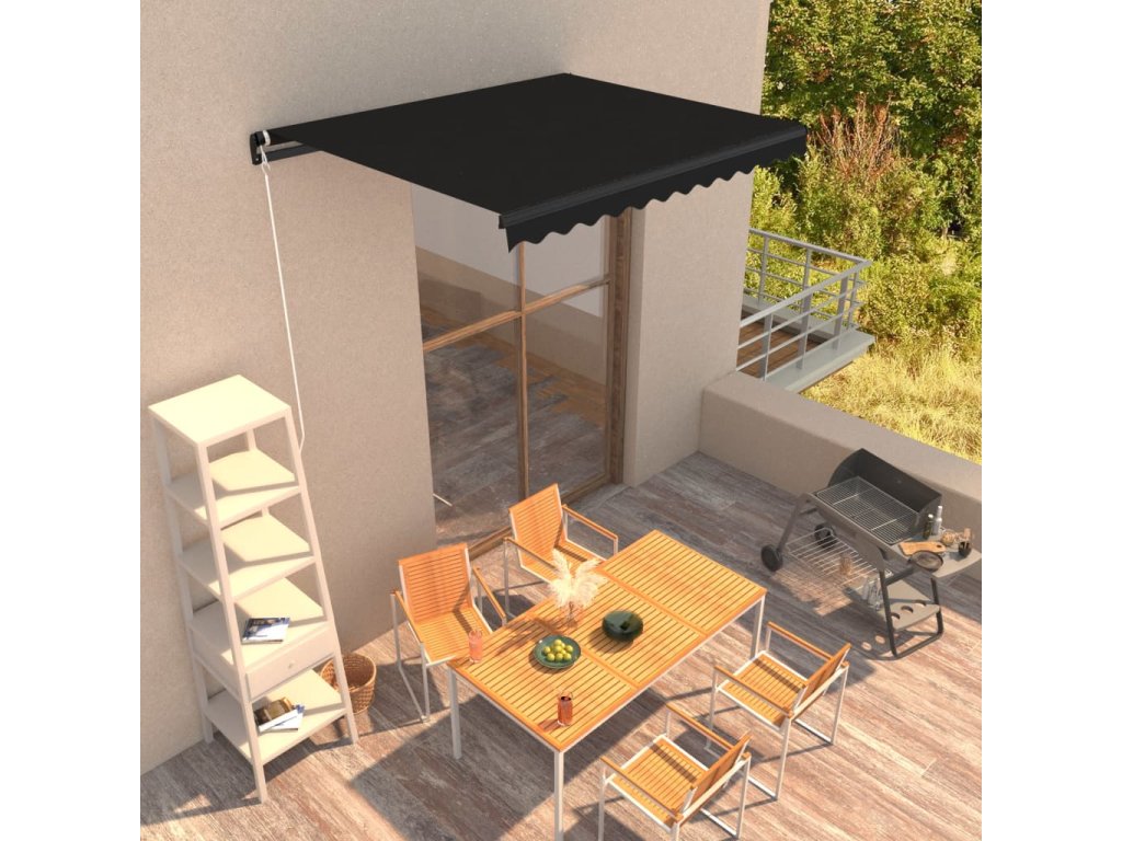 Vytvorte si príjemné miesto v tieni na terase a chráňte sa pred UV lúčmi pomocou našej ručne zaťahovacej markízy! Táto terasová markíza je ideálna na zatienenie okien, na použitie na balkóne, dvore, terase, v kaviarňach, ale aj v reštauráciách so zadnými terasami.