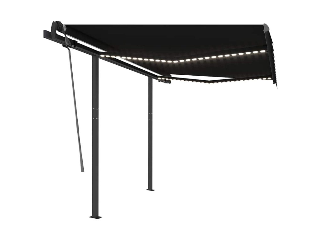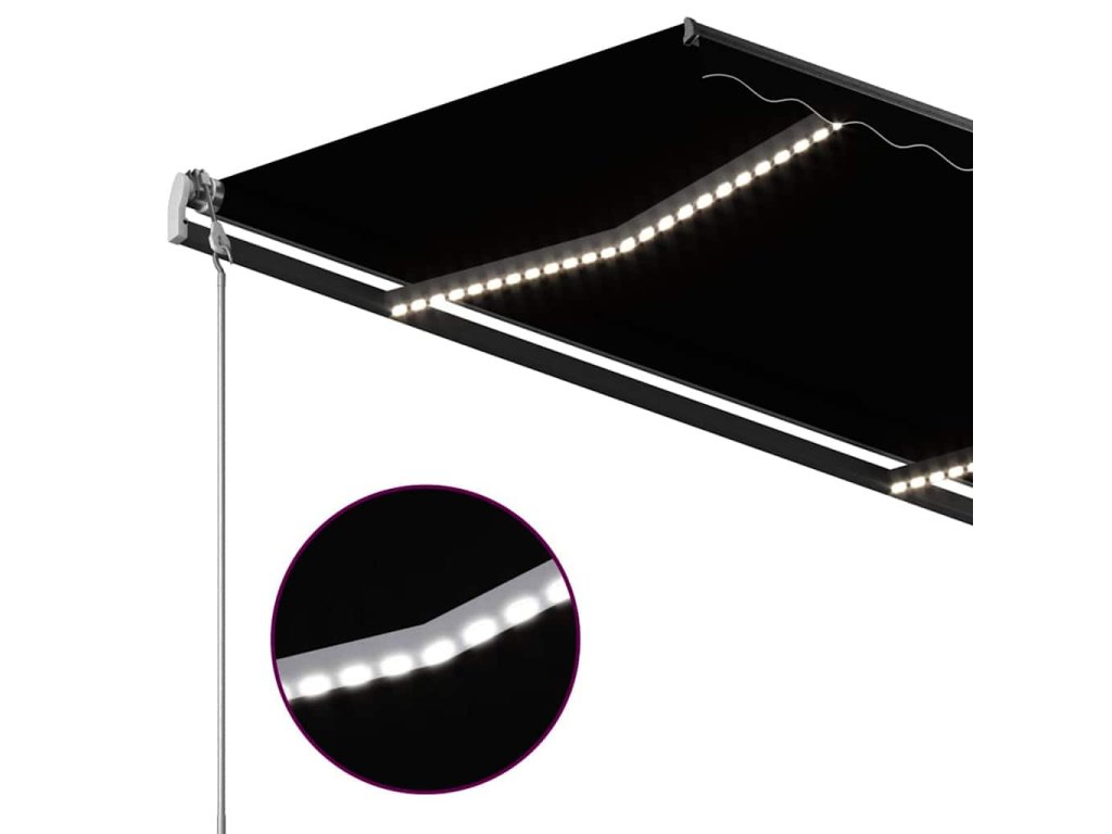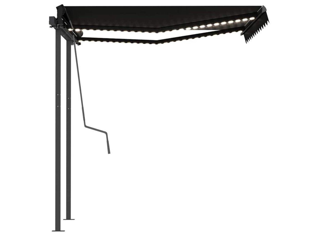 Táto vonkajšia markíza postavená z nehrdzavejúceho hliníkového rámu s práškovým nástrekom je ľahká, ale odolná. Vďaka pevnému železnému stĺpiku je stabilná. Látka markízy je vyrobená z polyesteru s vysokou hustotou s PU povlakom, ktorý je odolný voči vode a UV žiareniu. Uhol a výšku je možné prispôsobiť vašim konkrétnym potrebám. Markízu môžete hladko otvárať a zasúvať pomocou dlhej kľuky. Navyše, solárne napájané LED svetlá poskytujú v noci energeticky úsporné osvetlenie.