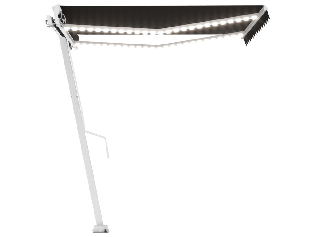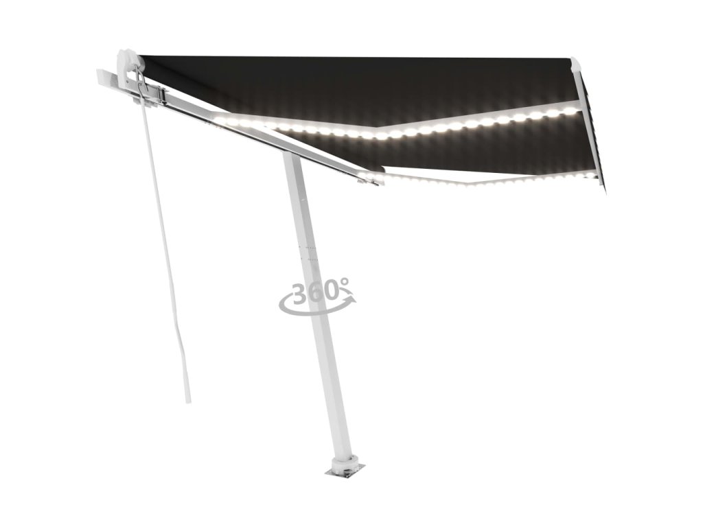 Táto vonkajšia markíza má rám vyrobený z nehrdzavejúceho hliníka s práškovou povrchovou úpravou. Má ľahký dizajn, ale napriek tomu pevnú štruktúru. Ručne zaťahovacia markíza má tkaninu vyrobenú z polyesteru s vysokou hustotou a PU povrch, ktorý je vodeodolný a odolný voči UV žiareniu. Uhol a výška sa dá upraviť podľa vašich konkrétnych potrieb. Pomocou dlhej kľučky ju môžete jednoducho otvoriť a zatiahnuť. Solárne LED svetlá navyše poskytujú v noci energeticky úsporné osvetlenie. Robustná základňa sa dá otáčať o 360 stupňov, čo poskytuje voľnosť v nastavovaní.