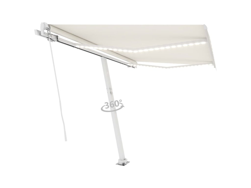 Táto vonkajšia markíza má rám vyrobený z nehrdzavejúceho hliníka s práškovou povrchovou úpravou. Má ľahký dizajn, ale napriek tomu pevnú štruktúru. Ručne zaťahovacia markíza má tkaninu vyrobenú z polyesteru s vysokou hustotou a PU povrch, ktorý je vodeodolný a odolný voči UV žiareniu. Uhol a výška sa dá upraviť podľa vašich konkrétnych potrieb. Pomocou dlhej kľučky ju môžete jednoducho otvoriť a zatiahnuť. Solárne LED svetlá navyše poskytujú v noci energeticky úsporné osvetlenie. Robustná základňa sa dá otáčať o 360 stupňov, čo poskytuje voľnosť v nastavovaní.