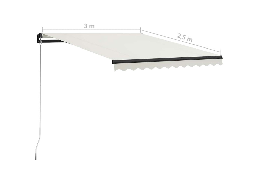 Pred montážou a použitím výrobku je nutné prečítať si návod na obsluhu. Odložte si tento návod, aby ste ho mohli v budúcnosti v prípade potreby použiť. Tento výrobok je určený len na vonkajšie a domáce použitie ako ochrana pred slnkom alebo dekorácia. Nikdy výrobok nepoužívajte na iné účely ani ho neupravujte. Nepoužívajte výrobok na miestach, kde dochádza k vibráciám alebo impulzom alebo kde by bol vystavený vysokým teplotám, napríklad na stenách v blízkosti pece. Pri montáži a nastavovaní markízy vždy používajte vhodné osobné ochranné pomôcky. Pri práci vo veľkých výškach hrozí riziko pádu, používajte vhodnú ochranu proti pádom. Pri montáži buďte opatrní, hrozí riziko pomliaždenia a pricviknutia. NEODSTRAŇUJTE bezpečnostné fólie. Tieto fólie sa môžu odstrániť len po dokončení všetkých montážnych krokov a po upevnení všetkých skrutiek a pripevnení predmetu k stene. Predčasné odstránenie fólií môže mať za následok vážne zranenie. Tento výrobok a jeho upevňovacie diely sú vhodné len na inštaláciu na hladkú cementovú stenu alebo stabilné neomietnuté murivo. Ak sa na stene/murive nachádzajú praskliny, musíte sa poradiť s odborníkom. Ak má vaša budova vonkajší plášť (napríklad izoláciu, dvojitú tehlovú stenu alebo tehlový obklad), inštaláciu by mal vykonať odborník. Nikdy neinštalujte výrobok na vyvýšených a veterných miestach, pretože by mohlo dôjsť k pádu tieniacej plachty a zraneniu osôb. Markízu neinštalujte, pokiaľ sú niektoré diely poškodené alebo chýbajú. Vonkajšia roleta sa musí stiahnuť v prípade, že rýchlosť vetra presahuje 28 km/h. Pred otvorením markízy sa uistite, že sú všetky držiaky pevne namontované do steny a že sú všetky skrutky poriadne utiahnuté. Markízu VŽDY ZATVÁRAJTE v prípade silného vetra, dažďa a keď sa nepoužíva. V opačnom prípade môže dôjsť k zraneniu osôb a/alebo poškodeniu majetku. Výsuvné ramená sú veľmi napnuté a môžu spôsobiť vážne poškodenie alebo zranenie. Deti by mali byť pod dozorom, aby sa so spotrebičom nehrali. Nepoužívajte výrobok, ak je potrebné ho opraviť alebo nastaviť. Nepoužívajte markízu, ak sa v jej blízkosti vykonáva údržba, ako napríklad čistenie okien. Prevádzka v mrazivých podmienkach môže markízu poškodiť. Nepokladajte na rám ťažké predmety, pretože by mohli spadnúť a spôsobiť škody. Príliš pevne alebo príliš slabo utiahnuté upevňovacie prvky by mohli spôsobiť poškodenie produktu alebo predstavovať nebezpečenstvo pre ľudí. Varovanie: Látka by sa počas používania nemala prepadávať, inak sa na nej bude hromadiť voda. Látku neodstraňujte a neperte. Ak potrebujete látku vymeniť, obráťte sa na odborníkov a nechajte si poradiť. Pri ovládaní ručného spúšťania so zatiahnutou vonkajšou roletou buďte opatrní, pretože môže dôjsť k jej rýchlemu pádu v dôsledku slabých alebo poškodených pružín. Nebezpečenstvo! Silná pružina pri otváraní. NEODSTRAŇUJTE toto lano, kým neukončíte všetky montážne kroky a kým všetky skrutky nie sú utiahnuté a zariadenie nie je pripenené k stene! Varovanie! Pri uvoľňovaní ramien buďte opatrní, pretože sú napnuté! Náhle uvoľnenie ramena markízy môže spôsobiť poranenie. Varovanie: Pred použitím tohto produktu by ste si mali prečítať návod na obsluhu. Varovanie: použitie v mraze môže výrobok poškodiť. Vonkajšie použitie v stavebníctve a iných stavebných úkonoch.