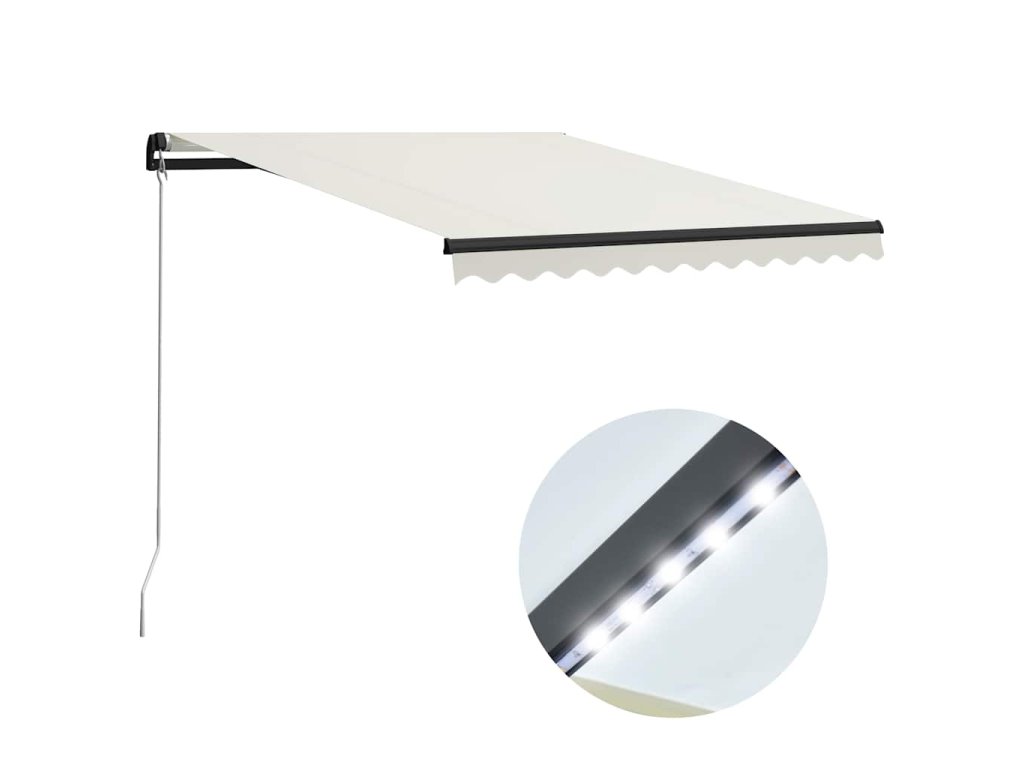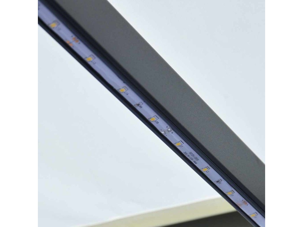 Rám bol vyrobený z práškovaného hliníka odolného voči hrdzi. Má ľahkú konštrukciu, ktorá napriek tomu dokáže odolať vetru v určitom rozsahu. Textilná plachta so skladacím ramenom je vyrobená z polyesteru s vysokou hustotou s PU povrchom, ktorý je vodeodolný, odolný voči UV žiareniu a vyblednutiu. Uhol a výšku je možné upraviť podľa vašich špecifických potrieb. Vonkajšiu markízu môžete jednoducho otvoriť a zatiahnuť pomocou dlhej rukoväte. Okrem toho má markíza solárne napájané LED svetlá pripojené k ramenu, ktoré zabezpečujú energeticky efektívne osvetlenie počas noci.