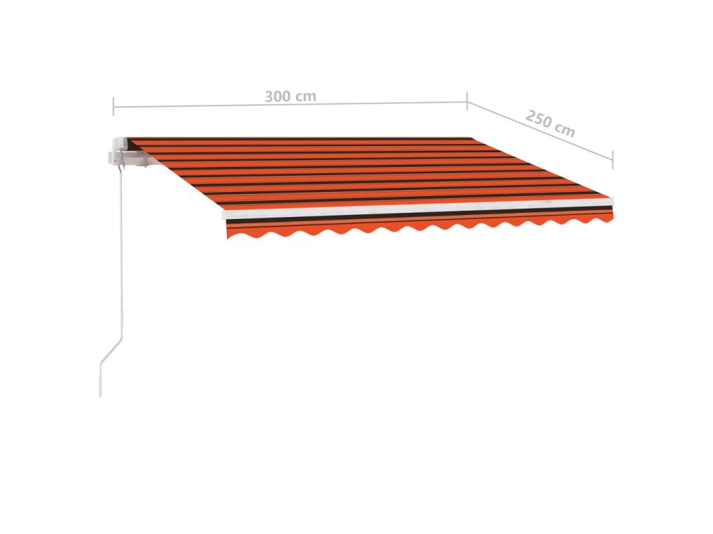 Táto vonkajšia markíza má rám vyrobený z nehrdzavejúceho hliníka s práškovou povrchovou úpravou. Má ľahký dizajn, ale napriek tomu pevnú štruktúru. Ručne zaťahovacia markíza má tkaninu vyrobenú z polyesteru s vysokou hustotou a PU povrch, ktorý je vodeodolný a odolný voči UV žiareniu. Uhol a výška sa dá upraviť podľa vašich konkrétnych potrieb. Pomocou dlhej kľučky ju môžete jednoducho otvoriť a zatiahnuť. Solárne LED svetlá navyše poskytujú v noci energeticky úsporné osvetlenie. Robustná základňa sa dá otáčať o 360 stupňov, čo poskytuje voľnosť v nastavovaní.