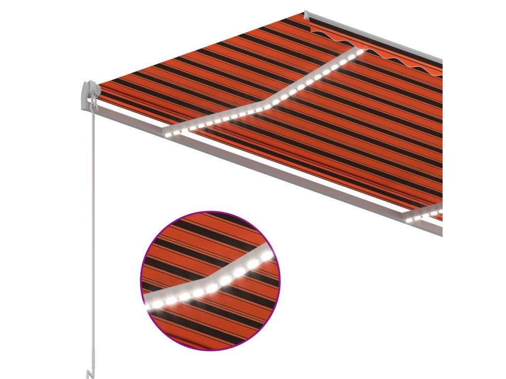 Táto vonkajšia markíza má rám vyrobený z nehrdzavejúceho hliníka s práškovou povrchovou úpravou. Má ľahký dizajn, ale napriek tomu pevnú štruktúru. Ručne zaťahovacia markíza má tkaninu vyrobenú z polyesteru s vysokou hustotou a PU povrch, ktorý je vodeodolný a odolný voči UV žiareniu. Uhol a výška sa dá upraviť podľa vašich konkrétnych potrieb. Pomocou dlhej kľučky ju môžete jednoducho otvoriť a zatiahnuť. Solárne LED svetlá navyše poskytujú v noci energeticky úsporné osvetlenie.