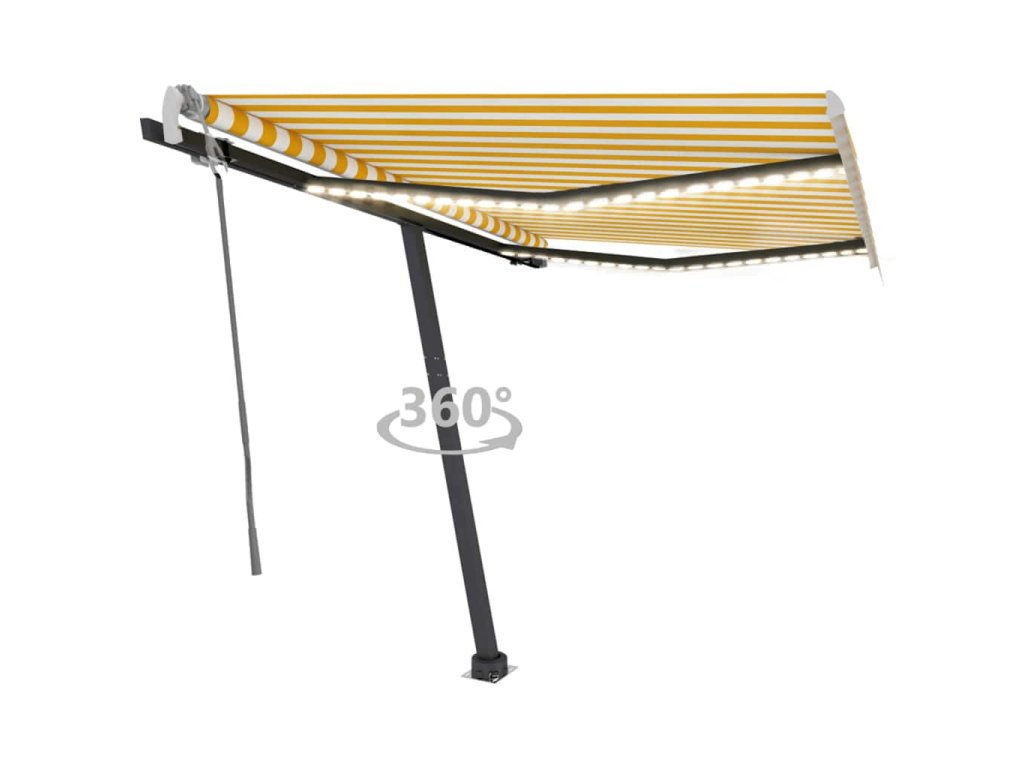 Táto vonkajšia markíza má rám vyrobený z nehrdzavejúceho hliníka s práškovou povrchovou úpravou. Má ľahký dizajn, ale napriek tomu pevnú štruktúru. Ručne zaťahovacia markíza má tkaninu vyrobenú z polyesteru s vysokou hustotou a PU povrch, ktorý je vodeodolný a odolný voči UV žiareniu. Uhol a výška sa dá upraviť podľa vašich konkrétnych potrieb. Pomocou dlhej kľučky ju môžete jednoducho otvoriť a zatiahnuť. Solárne LED svetlá navyše poskytujú v noci energeticky úsporné osvetlenie. Robustná základňa sa dá otáčať o 360 stupňov, čo poskytuje voľnosť v nastavovaní.