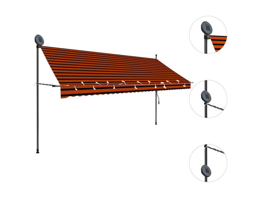 Táto markíza je vyrobená z kvalitného polyesteru s vrstvou PU, vďaka čomu odpudzuje vodu a nečistoty a je odolná voči UV žiareniu a poveternostným vplyvom. Markíza má pevný oceľový rám, takže je robustná a trvácna. Polyesterová strieška sa dá jednoducho odstrániť z rámu a očistiť. Markíza sa dá zatiahnuť pomocou ručnej kľuky. Výška aj sklon markízy sa dajú nastaviť podľa potreby. Solárne LED svetlá v noci vytvoria príjemné osvetlenie. Markíza sa jednoducho montuje.