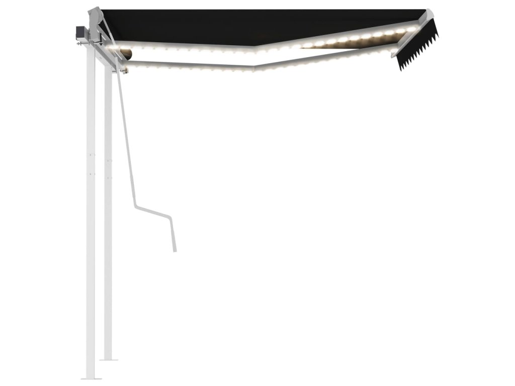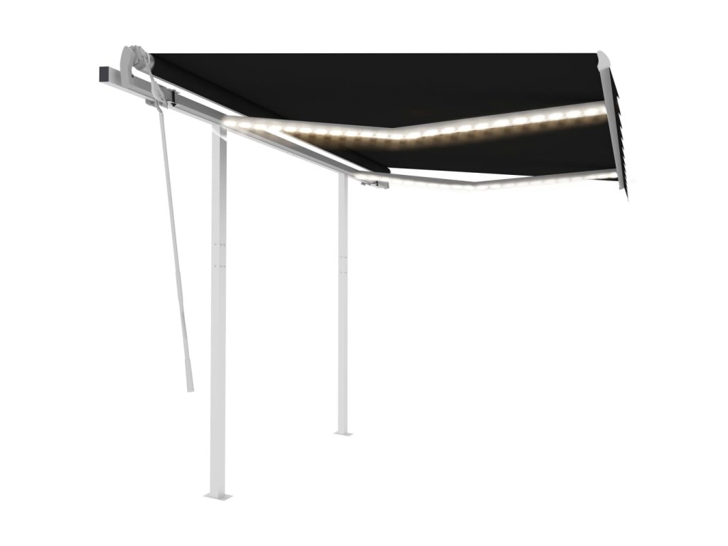 Táto vonkajšia markíza má rám vyrobený z nehrdzavejúceho hliníka s práškovou povrchovou úpravou. Má ľahký dizajn, ale napriek tomu pevnú štruktúru. Vďaka pevnému železnému stĺpiku je stabilná. Ručne zaťahovacia markíza má tkaninu vyrobenú z polyesteru s vysokou hustotou a PU povrch, ktorý je vodeodolný a odolný voči UV žiareniu. Uhol a výška sa dá upraviť podľa vašich konkrétnych potrieb. Pomocou dlhej kľučky ju môžete jednoducho otvoriť a zatiahnuť. Solárne LED svetlá navyše poskytujú v noci energeticky úsporné osvetlenie.