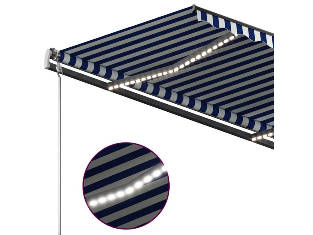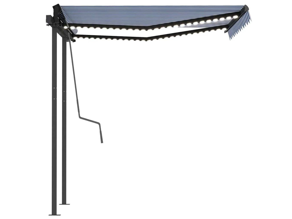 Táto vonkajšia markíza postavená z nehrdzavejúceho hliníkového rámu s práškovým nástrekom je ľahká, ale odolná. Vďaka pevnému železnému stĺpiku je stabilná. Látka markízy je vyrobená z polyesteru s vysokou hustotou s PU povlakom, ktorý je odolný voči vode a UV žiareniu. Uhol a výšku je možné prispôsobiť vašim konkrétnym potrebám. Markízu môžete hladko otvárať a zasúvať pomocou dlhej kľuky. Navyše, solárne napájané LED svetlá poskytujú v noci energeticky úsporné osvetlenie.