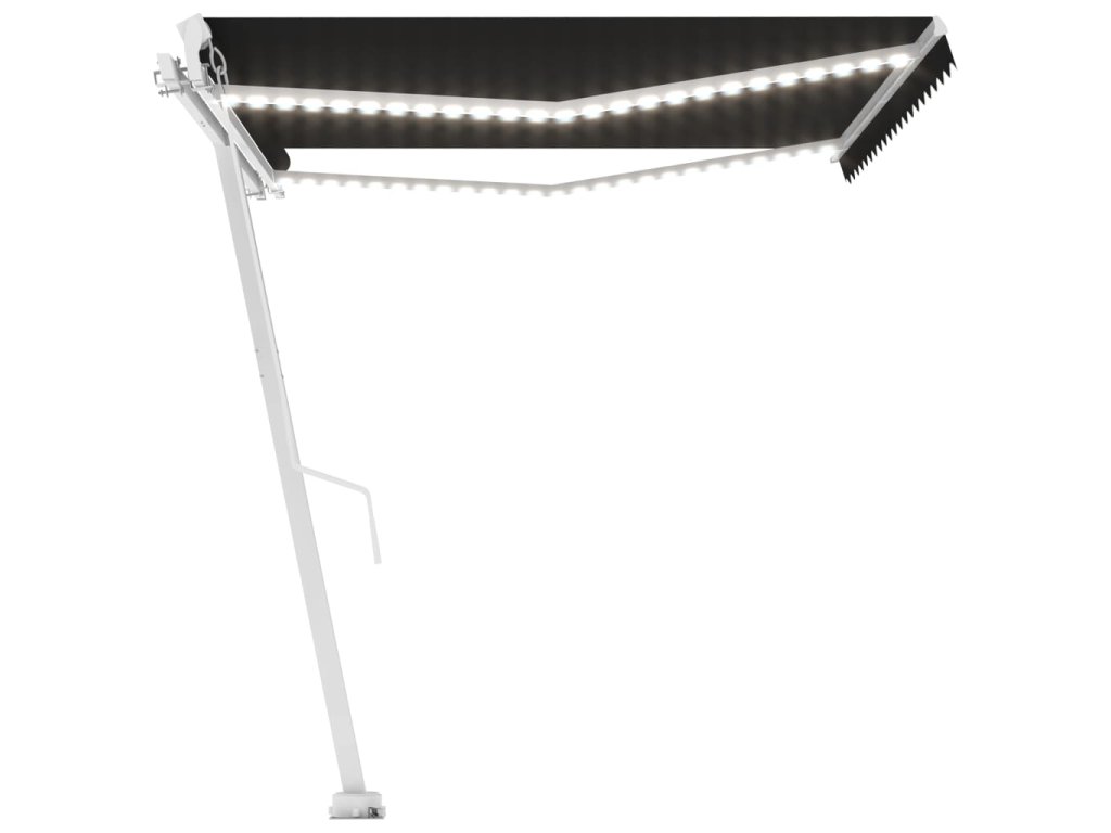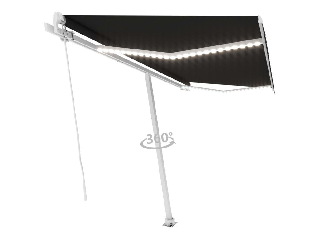 Táto vonkajšia markíza má rám vyrobený z nehrdzavejúceho hliníka s práškovou povrchovou úpravou. Má ľahký dizajn, ale napriek tomu pevnú štruktúru. Ručne zaťahovacia markíza má tkaninu vyrobenú z polyesteru s vysokou hustotou a PU povrch, ktorý je vodeodolný a odolný voči UV žiareniu. Uhol a výška sa dá upraviť podľa vašich konkrétnych potrieb. Pomocou dlhej kľučky ju môžete jednoducho otvoriť a zatiahnuť. Solárne LED svetlá navyše poskytujú v noci energeticky úsporné osvetlenie. Robustná základňa sa dá otáčať o 360 stupňov, čo poskytuje voľnosť v nastavovaní.
