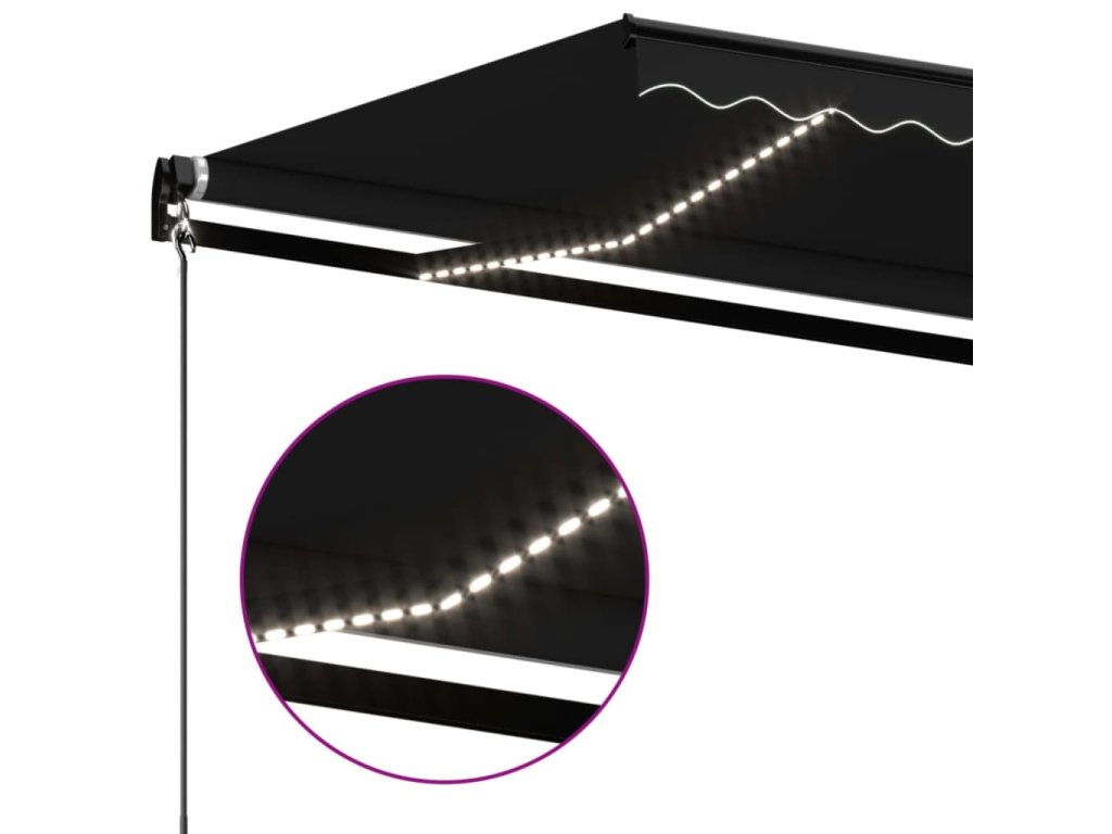 Táto vonkajšia markíza má rám vyrobený z nehrdzavejúceho hliníka s práškovou povrchovou úpravou. Má ľahký dizajn, ale napriek tomu pevnú štruktúru. Ručne zaťahovacia markíza má tkaninu vyrobenú z polyesteru s vysokou hustotou a PU povrch, ktorý je vodeodolný a odolný voči UV žiareniu. Uhol a výška sa dá upraviť podľa vašich konkrétnych potrieb. Pomocou dlhej kľučky ju môžete jednoducho otvoriť a zatiahnuť. Solárne LED svetlá navyše poskytujú v noci energeticky úsporné osvetlenie.