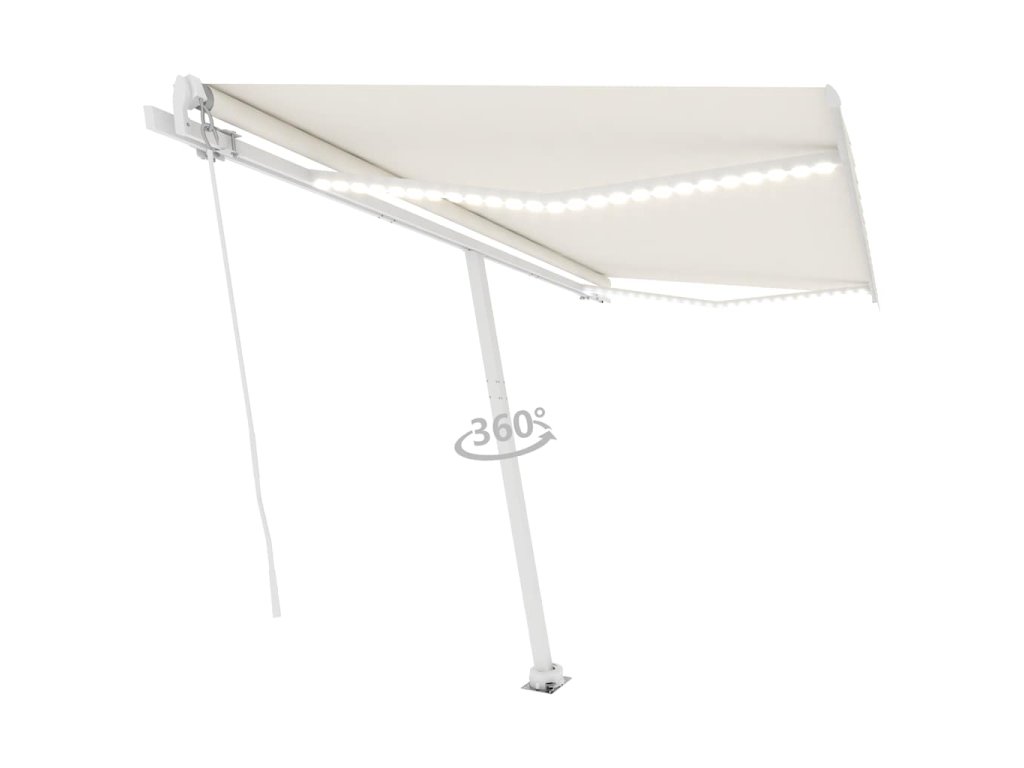 Táto vonkajšia markíza má rám vyrobený z nehrdzavejúceho hliníka s práškovou povrchovou úpravou. Má ľahký dizajn, ale napriek tomu pevnú štruktúru. Ručne zaťahovacia markíza má tkaninu vyrobenú z polyesteru s vysokou hustotou a PU povrch, ktorý je vodeodolný a odolný voči UV žiareniu. Uhol a výška sa dá upraviť podľa vašich konkrétnych potrieb. Pomocou dlhej kľučky ju môžete jednoducho otvoriť a zatiahnuť. Solárne LED svetlá navyše poskytujú v noci energeticky úsporné osvetlenie. Robustná základňa sa dá otáčať o 360 stupňov, čo poskytuje voľnosť v nastavovaní.
