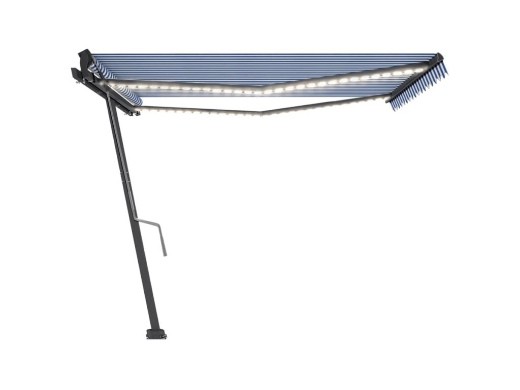 Táto vonkajšia markíza má rám vyrobený z nehrdzavejúceho hliníka s práškovou povrchovou úpravou. Má ľahký dizajn, ale napriek tomu pevnú štruktúru. Ručne zaťahovacia markíza má tkaninu vyrobenú z polyesteru s vysokou hustotou a PU povrch, ktorý je vodeodolný a odolný voči UV žiareniu. Uhol a výška sa dá upraviť podľa vašich konkrétnych potrieb. Pomocou dlhej kľučky ju môžete jednoducho otvoriť a zatiahnuť. Solárne LED svetlá navyše poskytujú v noci energeticky úsporné osvetlenie. Robustná základňa sa dá otáčať o 360 stupňov, čo poskytuje voľnosť v nastavovaní.