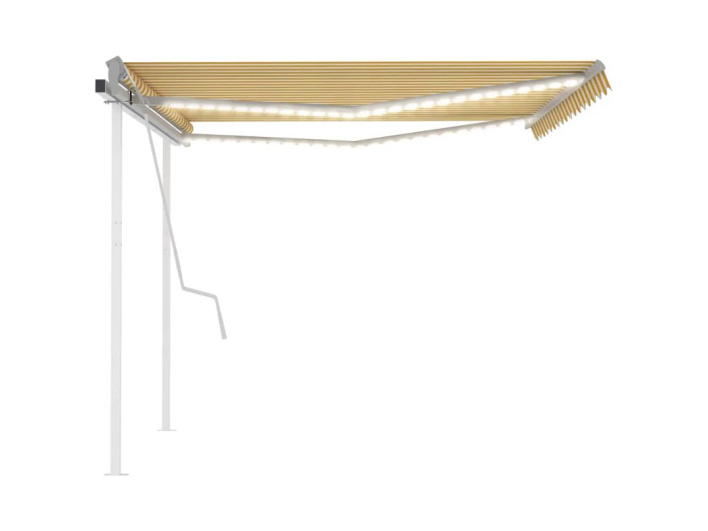 Táto vonkajšia markíza má rám vyrobený z nehrdzavejúceho hliníka s práškovou povrchovou úpravou. Má ľahký dizajn, ale napriek tomu pevnú štruktúru. Vďaka pevnému železnému stĺpiku je stabilná. Ručne zaťahovacia markíza má tkaninu vyrobenú z polyesteru s vysokou hustotou a PU povrch, ktorý je vodeodolný a odolný voči UV žiareniu. Uhol a výška sa dá upraviť podľa vašich konkrétnych potrieb. Pomocou dlhej kľučky ju môžete jednoducho otvoriť a zatiahnuť. Solárne LED svetlá navyše poskytujú v noci energeticky úsporné osvetlenie.