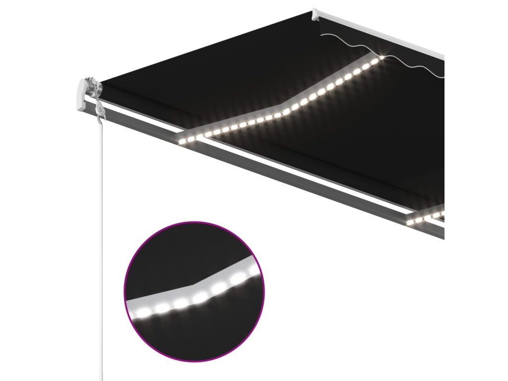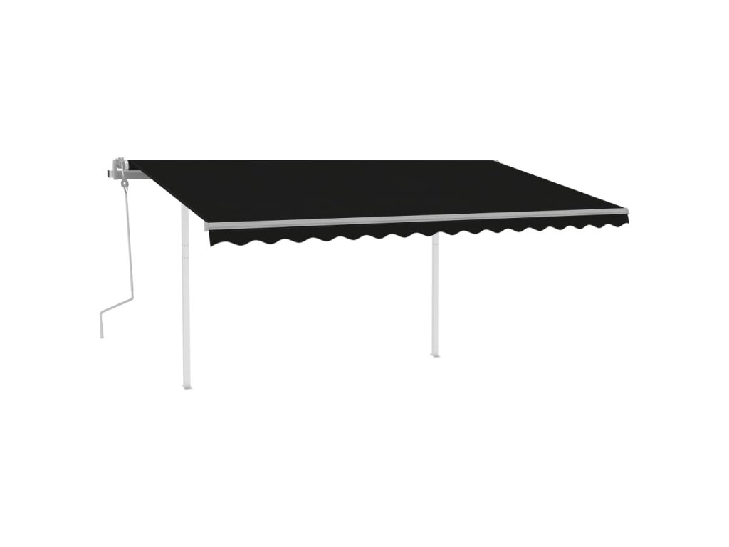 Táto vonkajšia markíza má rám vyrobený z nehrdzavejúceho hliníka s práškovou povrchovou úpravou. Má ľahký dizajn, ale napriek tomu pevnú štruktúru. Vďaka pevnému železnému stĺpiku je stabilná. Ručne zaťahovacia markíza má tkaninu vyrobenú z polyesteru s vysokou hustotou a PU povrch, ktorý je vodeodolný a odolný voči UV žiareniu. Uhol a výška sa dá upraviť podľa vašich konkrétnych potrieb. Pomocou dlhej kľučky ju môžete jednoducho otvoriť a zatiahnuť. Solárne LED svetlá navyše poskytujú v noci energeticky úsporné osvetlenie.