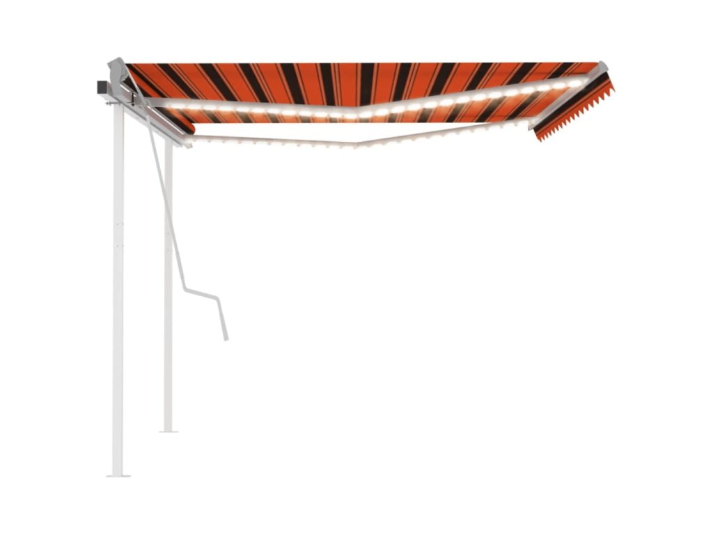 Táto vonkajšia markíza má rám vyrobený z nehrdzavejúceho hliníka s práškovou povrchovou úpravou. Má ľahký dizajn, ale napriek tomu pevnú štruktúru. Vďaka pevnému železnému stĺpiku je stabilná. Ručne zaťahovacia markíza má tkaninu vyrobenú z polyesteru s vysokou hustotou a PU povrch, ktorý je vodeodolný a odolný voči UV žiareniu. Uhol a výška sa dá upraviť podľa vašich konkrétnych potrieb. Pomocou dlhej kľučky ju môžete jednoducho otvoriť a zatiahnuť. Solárne LED svetlá navyše poskytujú v noci energeticky úsporné osvetlenie.