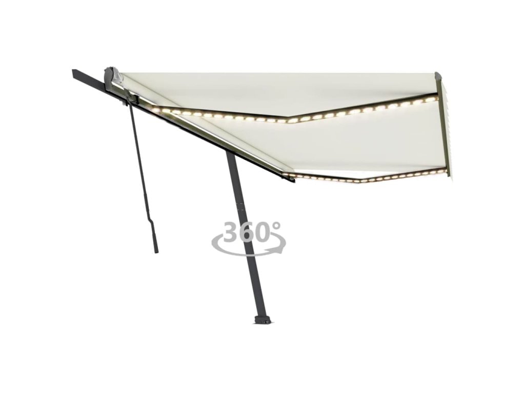 Táto vonkajšia markíza má rám vyrobený z nehrdzavejúceho hliníka s práškovou povrchovou úpravou. Má ľahký dizajn, ale napriek tomu pevnú štruktúru. Ručne zaťahovacia markíza má tkaninu vyrobenú z polyesteru s vysokou hustotou a PU povrch, ktorý je vodeodolný a odolný voči UV žiareniu. Uhol a výška sa dá upraviť podľa vašich konkrétnych potrieb. Pomocou dlhej kľučky ju môžete jednoducho otvoriť a zatiahnuť. Solárne LED svetlá navyše poskytujú v noci energeticky úsporné osvetlenie. Robustná základňa sa dá otáčať o 360 stupňov, čo poskytuje voľnosť v nastavovaní.