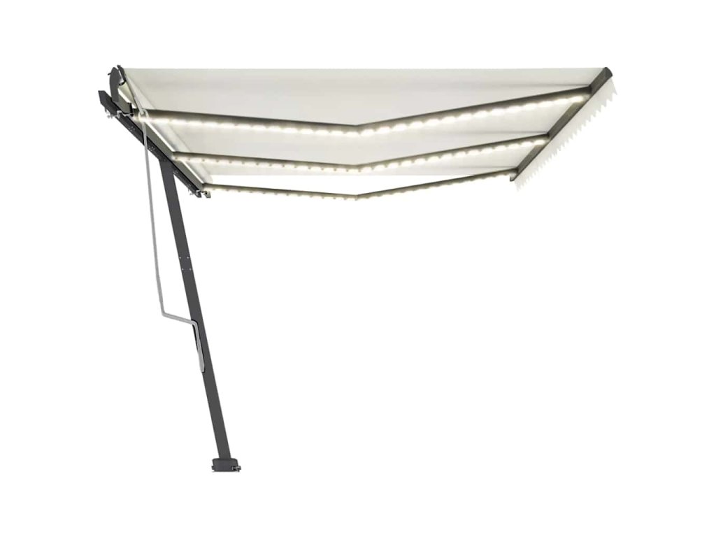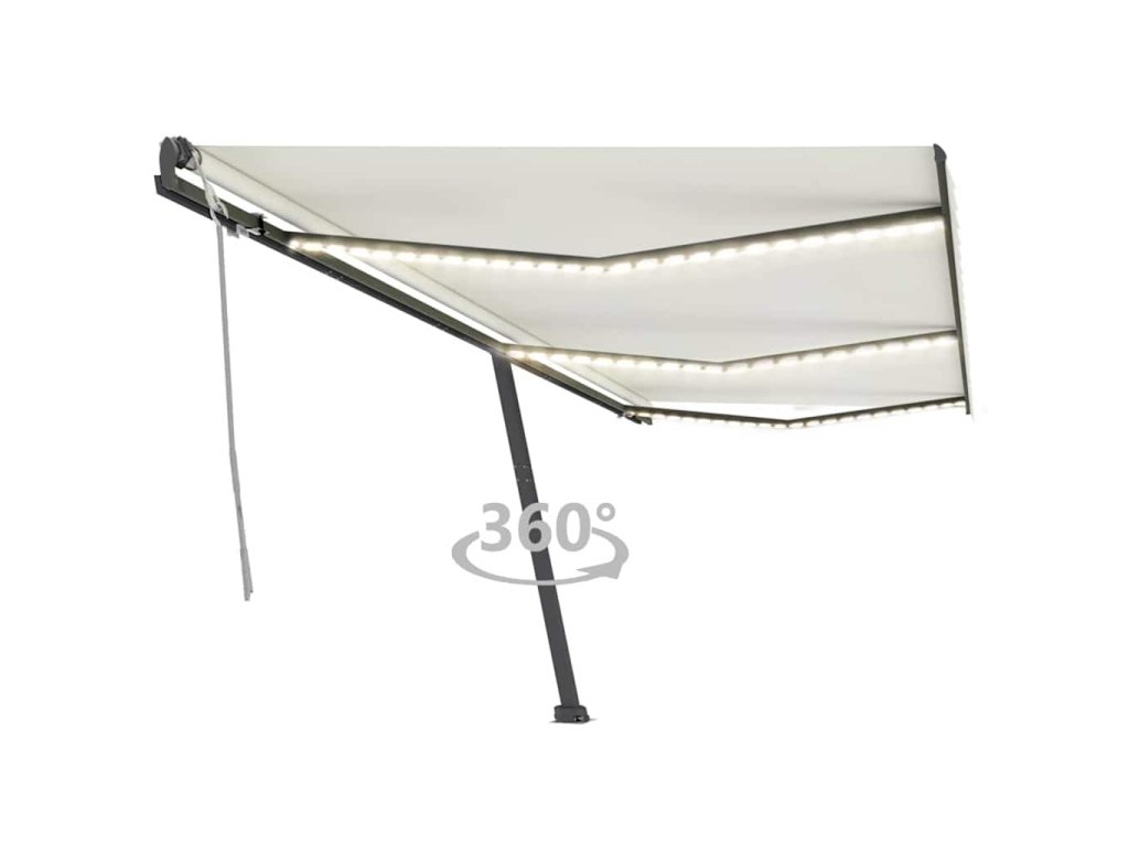 Táto vonkajšia markíza má rám vyrobený z nehrdzavejúceho hliníka s práškovou povrchovou úpravou. Má ľahký dizajn, ale napriek tomu pevnú štruktúru. Ručne zaťahovacia markíza má tkaninu vyrobenú z polyesteru s vysokou hustotou a PU povrch, ktorý je vodeodolný a odolný voči UV žiareniu. Uhol a výška sa dá upraviť podľa vašich konkrétnych potrieb. Pomocou dlhej kľučky ju môžete jednoducho otvoriť a zatiahnuť. Solárne LED svetlá navyše poskytujú v noci energeticky úsporné osvetlenie. Robustná základňa sa dá otáčať o 360 stupňov, čo poskytuje voľnosť v nastavovaní.