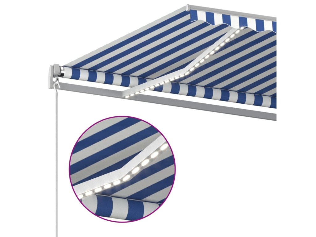 Táto vonkajšia markíza má rám vyrobený z nehrdzavejúceho hliníka s práškovou povrchovou úpravou. Má ľahký dizajn, ale napriek tomu pevnú štruktúru. Ručne zaťahovacia markíza má tkaninu vyrobenú z polyesteru s vysokou hustotou a PU povrch, ktorý je vodeodolný a odolný voči UV žiareniu. Uhol a výška sa dá upraviť podľa vašich konkrétnych potrieb. Pomocou dlhej kľučky ju môžete jednoducho otvoriť a zatiahnuť. Solárne LED svetlá navyše poskytujú v noci energeticky úsporné osvetlenie.