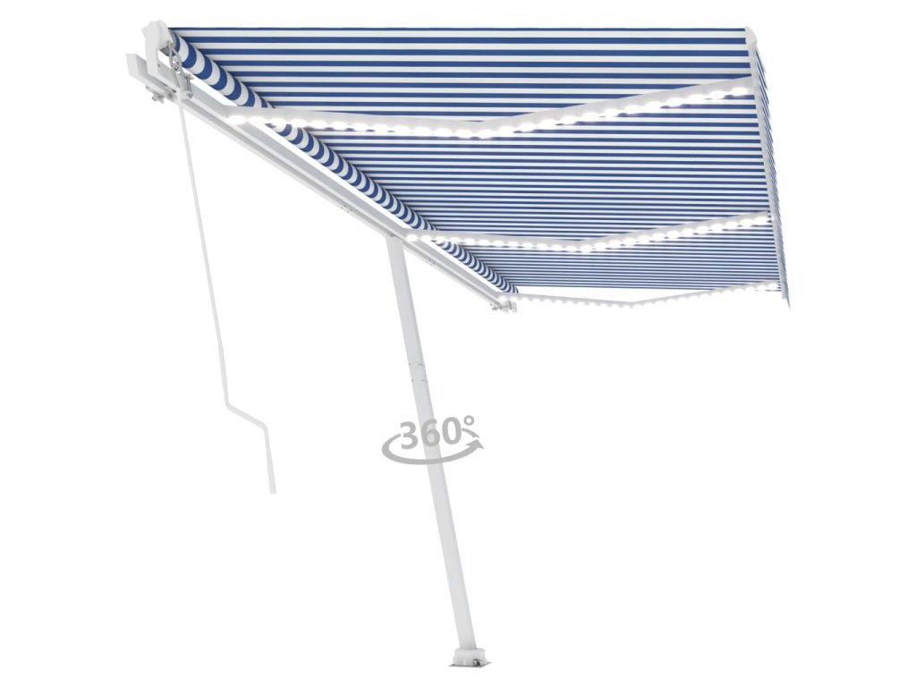 Táto vonkajšia markíza má rám vyrobený z nehrdzavejúceho hliníka s práškovou povrchovou úpravou. Má ľahký dizajn, ale napriek tomu pevnú štruktúru. Ručne zaťahovacia markíza má tkaninu vyrobenú z polyesteru s vysokou hustotou a PU povrch, ktorý je vodeodolný a odolný voči UV žiareniu. Uhol a výška sa dá upraviť podľa vašich konkrétnych potrieb. Pomocou dlhej kľučky ju môžete jednoducho otvoriť a zatiahnuť. Solárne LED svetlá navyše poskytujú v noci energeticky úsporné osvetlenie. Robustná základňa sa dá otáčať o 360 stupňov, čo poskytuje voľnosť v nastavovaní.