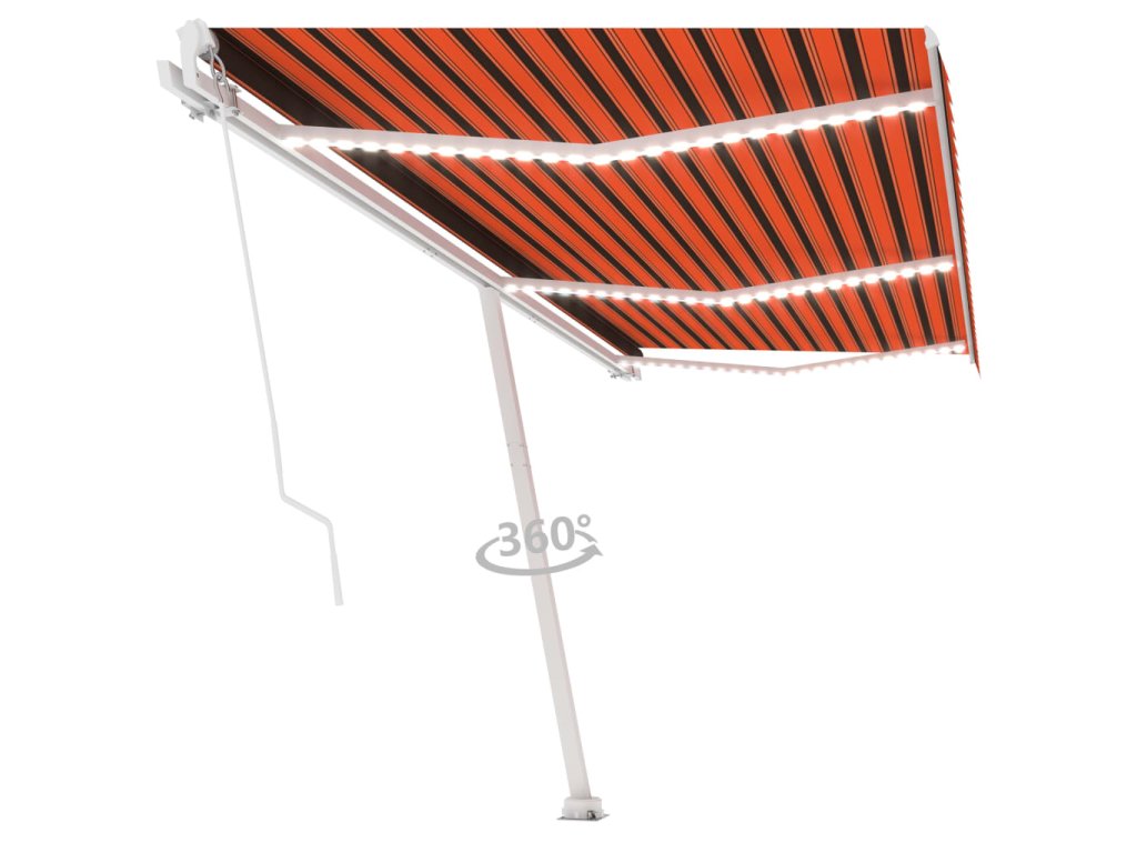 Táto vonkajšia markíza má rám vyrobený z nehrdzavejúceho hliníka s práškovou povrchovou úpravou. Má ľahký dizajn, ale napriek tomu pevnú štruktúru. Ručne zaťahovacia markíza má tkaninu vyrobenú z polyesteru s vysokou hustotou a PU povrch, ktorý je vodeodolný a odolný voči UV žiareniu. Uhol a výška sa dá upraviť podľa vašich konkrétnych potrieb. Pomocou dlhej kľučky ju môžete jednoducho otvoriť a zatiahnuť. Solárne LED svetlá navyše poskytujú v noci energeticky úsporné osvetlenie. Robustná základňa sa dá otáčať o 360 stupňov, čo poskytuje voľnosť v nastavovaní.