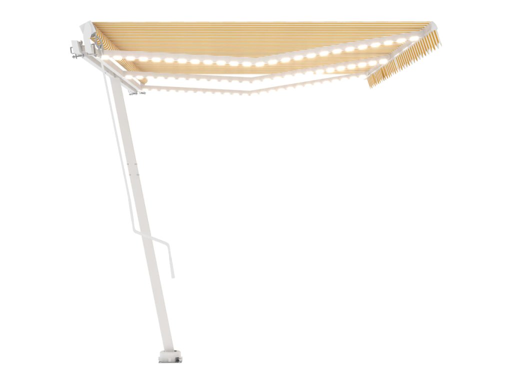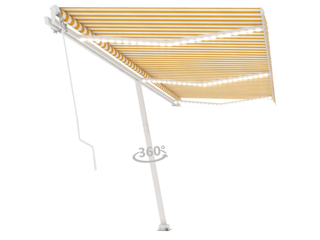 Táto vonkajšia markíza má rám vyrobený z nehrdzavejúceho hliníka s práškovou povrchovou úpravou. Má ľahký dizajn, ale napriek tomu pevnú štruktúru. Ručne zaťahovacia markíza má tkaninu vyrobenú z polyesteru s vysokou hustotou a PU povrch, ktorý je vodeodolný a odolný voči UV žiareniu. Uhol a výška sa dá upraviť podľa vašich konkrétnych potrieb. Pomocou dlhej kľučky ju môžete jednoducho otvoriť a zatiahnuť. Solárne LED svetlá navyše poskytujú v noci energeticky úsporné osvetlenie. Robustná základňa sa dá otáčať o 360 stupňov, čo poskytuje voľnosť v nastavovaní.