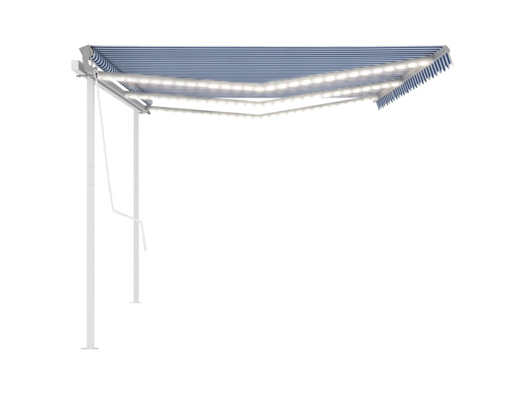 Táto vonkajšia markíza má rám vyrobený z nehrdzavejúceho hliníka s práškovou povrchovou úpravou. Má ľahký dizajn, ale napriek tomu pevnú štruktúru. Vďaka pevnému železnému stĺpiku je stabilná. Ručne zaťahovacia markíza má tkaninu vyrobenú z polyesteru s vysokou hustotou a PU povrch, ktorý je vodeodolný a odolný voči UV žiareniu. Uhol a výška sa dá upraviť podľa vašich konkrétnych potrieb. Pomocou dlhej kľučky ju môžete jednoducho otvoriť a zatiahnuť. Solárne LED svetlá navyše poskytujú v noci energeticky úsporné osvetlenie.