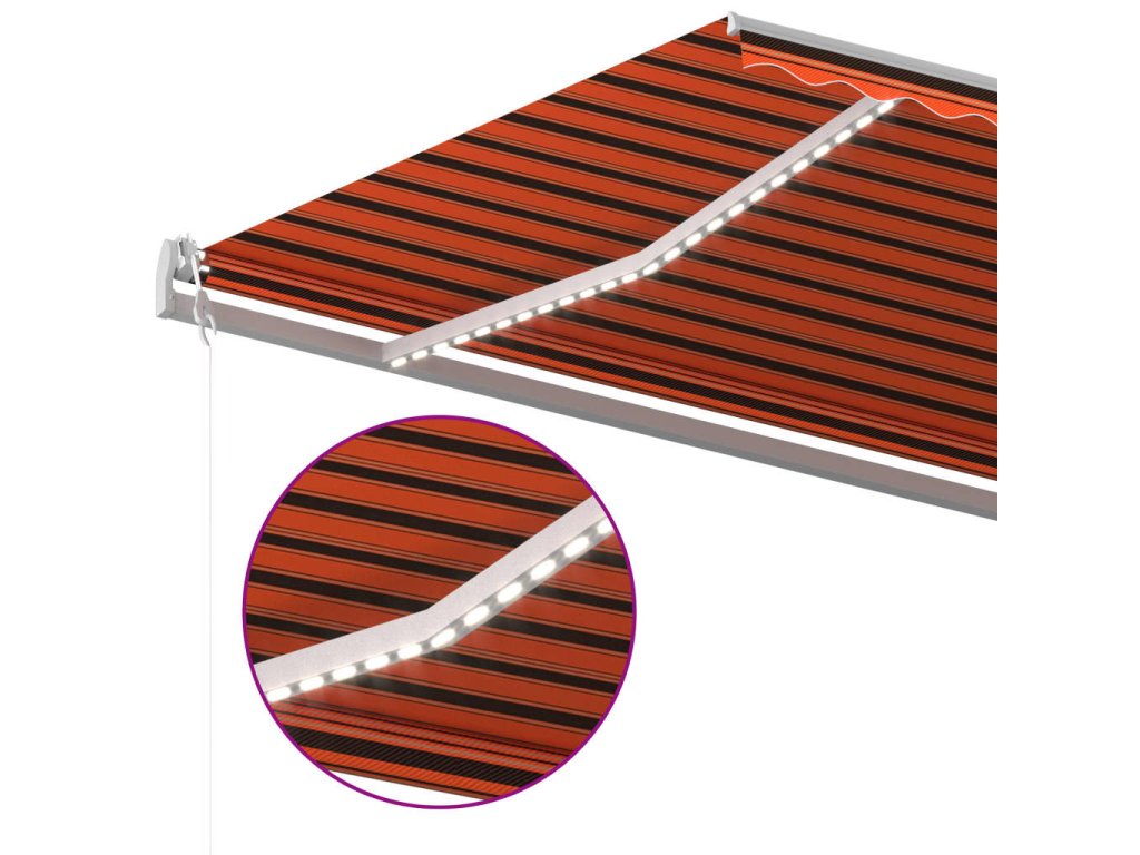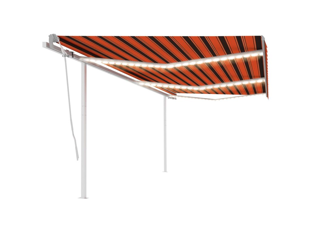 Táto vonkajšia markíza má rám vyrobený z nehrdzavejúceho hliníka s práškovou povrchovou úpravou. Má ľahký dizajn, ale napriek tomu pevnú štruktúru. Vďaka pevnému železnému stĺpiku je stabilná. Ručne zaťahovacia markíza má tkaninu vyrobenú z polyesteru s vysokou hustotou a PU povrch, ktorý je vodeodolný a odolný voči UV žiareniu. Uhol a výška sa dá upraviť podľa vašich konkrétnych potrieb. Pomocou dlhej kľučky ju môžete jednoducho otvoriť a zatiahnuť. Solárne LED svetlá navyše poskytujú v noci energeticky úsporné osvetlenie.