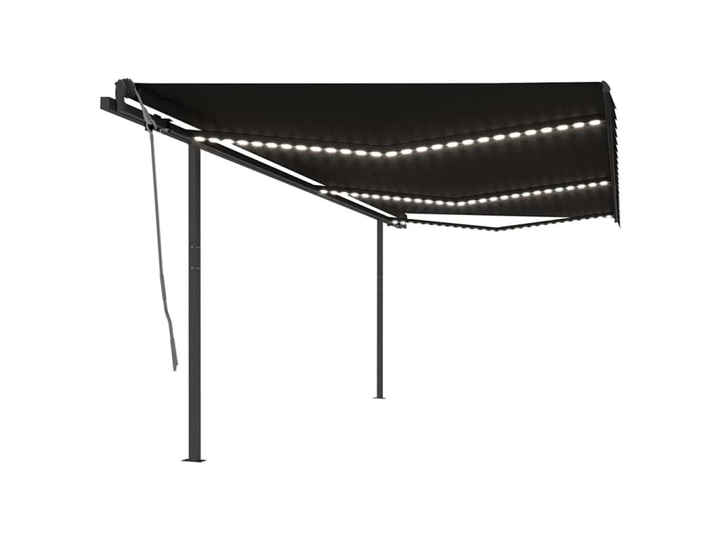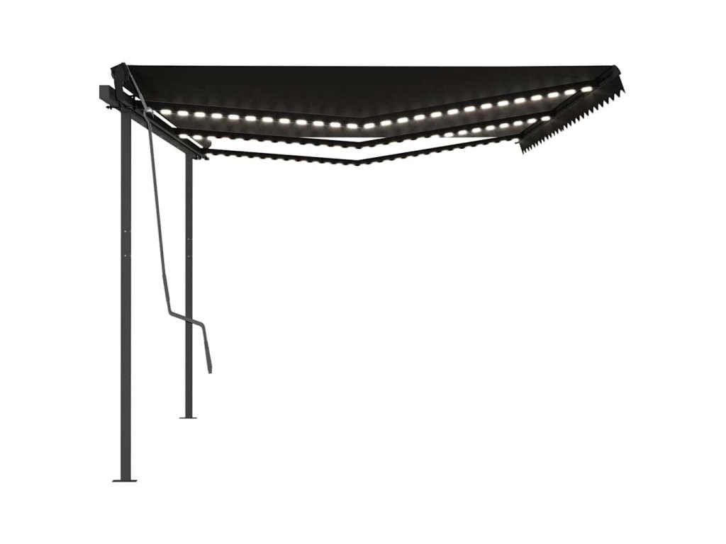 Táto vonkajšia markíza postavená z nehrdzavejúceho hliníkového rámu s práškovým nástrekom je ľahká, ale odolná. Vďaka pevnému železnému stĺpiku je stabilná. Látka markízy je vyrobená z polyesteru s vysokou hustotou s PU povlakom, ktorý je odolný voči vode a UV žiareniu. Uhol a výšku je možné prispôsobiť vašim konkrétnym potrebám. Markízu môžete hladko otvárať a zasúvať pomocou dlhej kľuky. Navyše, solárne napájané LED svetlá poskytujú v noci energeticky úsporné osvetlenie.