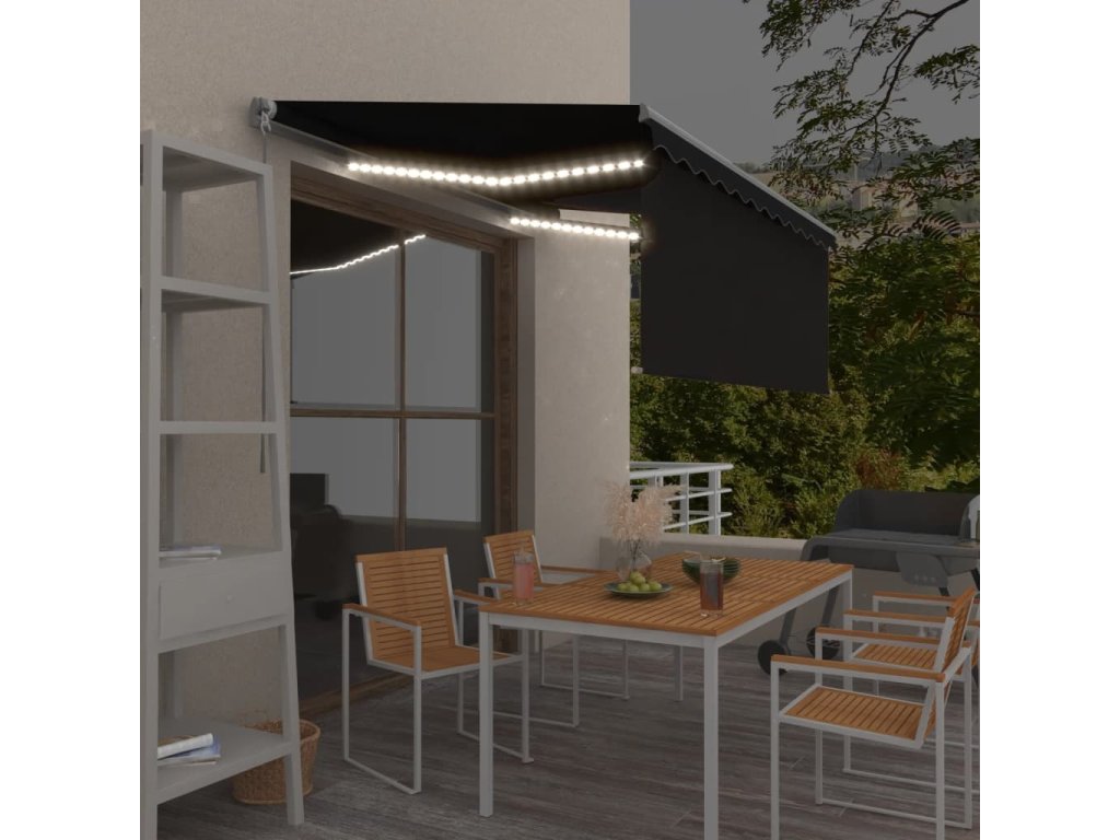 Táto vonkajšia markíza má rám vyrobený z nehrdzavejúceho hliníka s práškovou povrchovou úpravou. Má ľahký dizajn, ale napriek tomu pevnú štruktúru. Ručne zaťahovacia markíza má tkaninu vyrobenú z polyesteru s vysokou hustotou a PU povrch, ktorý je vodeodolný a odolný voči UV žiareniu. Uhol a výška sa dá upraviť podľa vašich konkrétnych potrieb. Pomocou dlhej kľučky ju môžete jednoducho otvoriť a zatiahnuť. Solárne LED svetlá navyše poskytujú v noci energeticky úsporné osvetlenie. Tienidlo vás ochráni pred UV žiarením a vytvára súkromie.