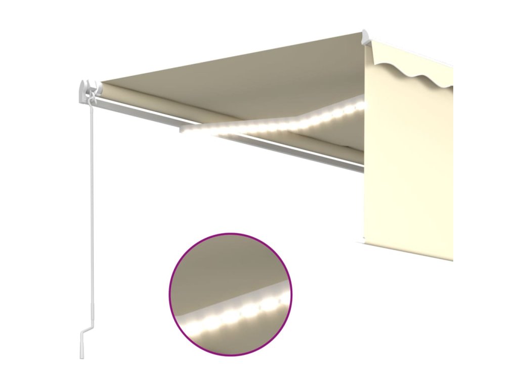 Táto vonkajšia markíza má rám vyrobený z nehrdzavejúceho hliníka s práškovou povrchovou úpravou. Má ľahký dizajn, ale napriek tomu pevnú štruktúru. Ručne zaťahovacia markíza má tkaninu vyrobenú z polyesteru s vysokou hustotou a PU povrch, ktorý je vodeodolný a odolný voči UV žiareniu. Uhol a výška sa dá upraviť podľa vašich konkrétnych potrieb. Pomocou dlhej kľučky ju môžete jednoducho otvoriť a zatiahnuť. Solárne LED svetlá navyše poskytujú v noci energeticky úsporné osvetlenie. Tienidlo vás ochráni pred UV žiarením a vytvára súkromie.