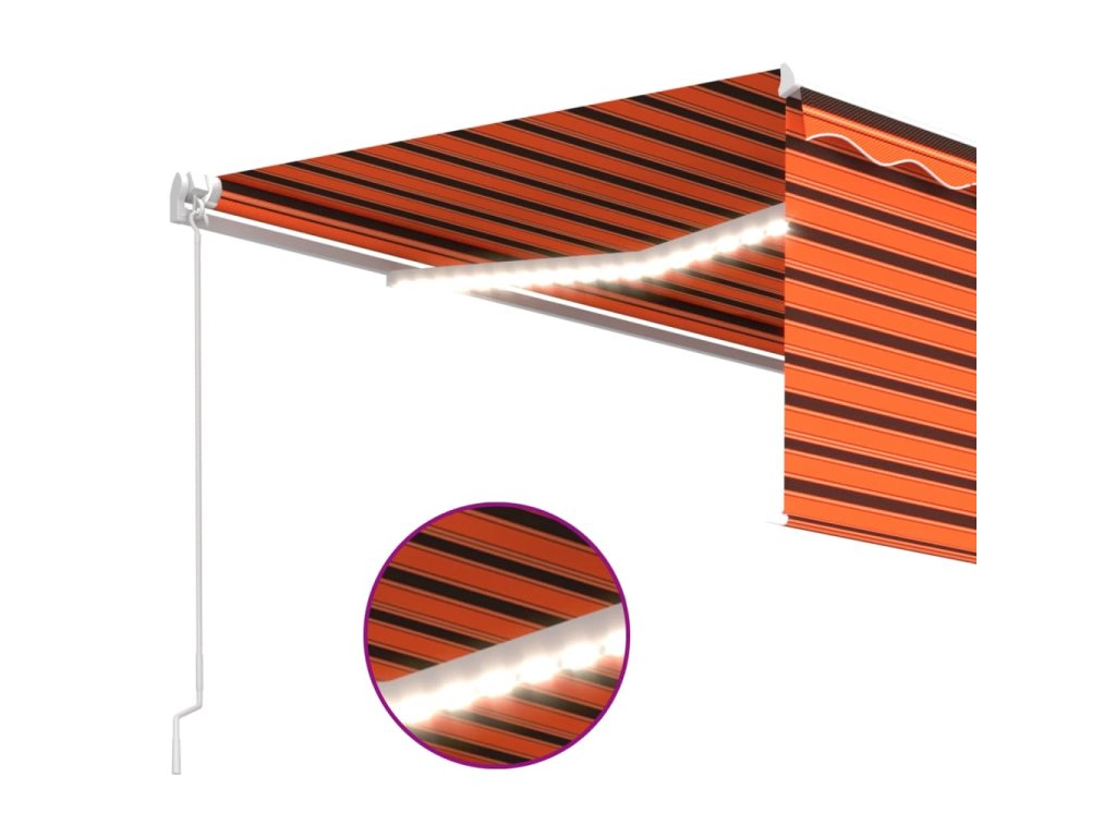Táto vonkajšia markíza má rám vyrobený z nehrdzavejúceho hliníka s práškovou povrchovou úpravou. Má ľahký dizajn, ale napriek tomu pevnú štruktúru. Ručne zaťahovacia markíza má tkaninu vyrobenú z polyesteru s vysokou hustotou a PU povrch, ktorý je vodeodolný a odolný voči UV žiareniu. Uhol a výška sa dá upraviť podľa vašich konkrétnych potrieb. Pomocou dlhej kľučky ju môžete jednoducho otvoriť a zatiahnuť. Solárne LED svetlá navyše poskytujú v noci energeticky úsporné osvetlenie. Tienidlo vás ochráni pred UV žiarením a vytvára súkromie.